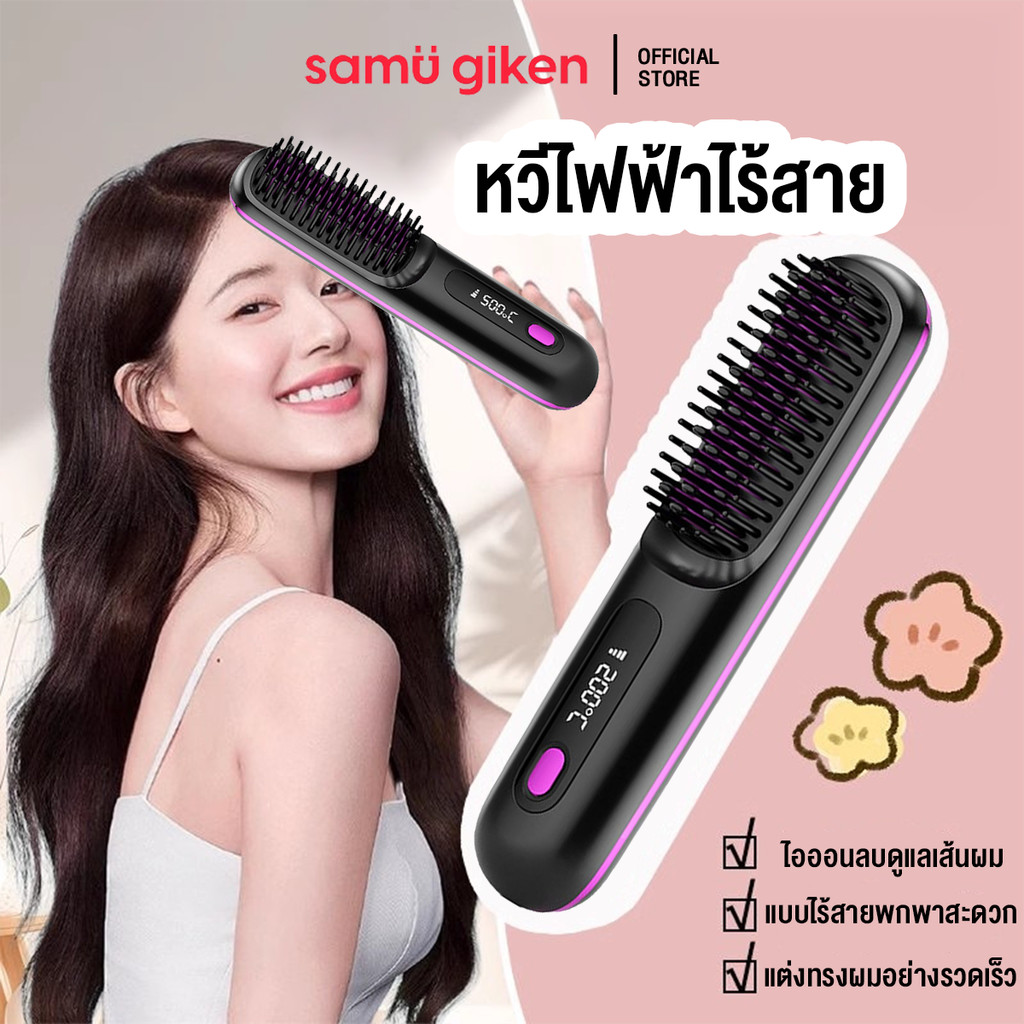 SamuGiken หวีไฟฟ้าไร้สาย พกพาสะดวก มีไอออนเคราตินบำรุงผม ร้อนเร็ว ซี่หวีเคลือบไม่ลวกหน้าและมือ
