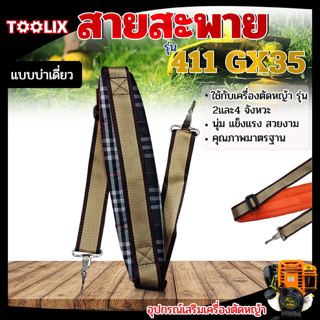 สายสะพายเครื่องตัดหญ้า บ่าเดียว อย่างดี ลูกฟูกลายสก๊อต ปรับระดับสายได้ 411 / CG260 / 328