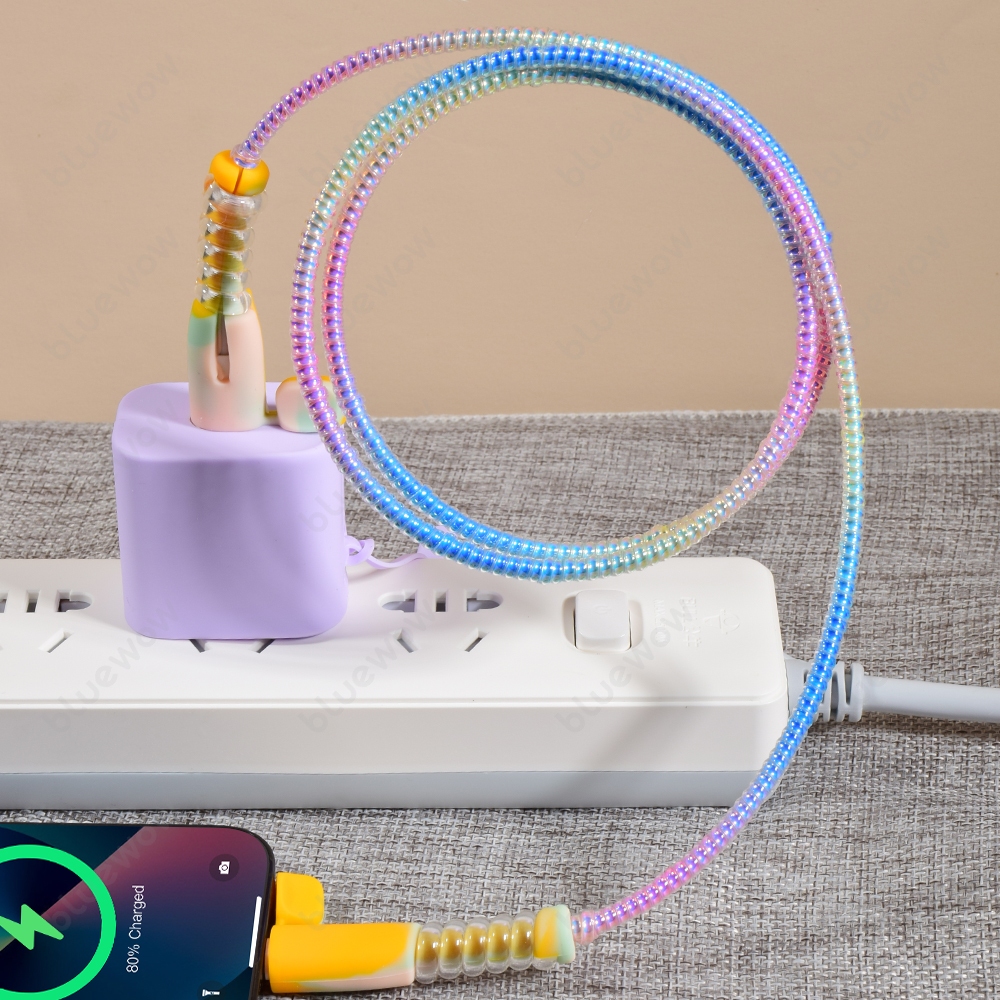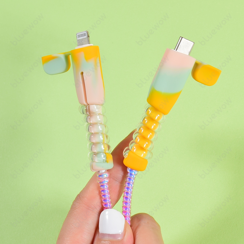 ขายร้อน Bluewow Charger Protector ซิลิโคนอุปกรณ์เสริมสาย iP-18/20w คู่ Type-C ปลั๊กชาร์จสายสําหรับ iPhone15/14/13/12/11promax ฝาครอบเครื่องชาร์จ