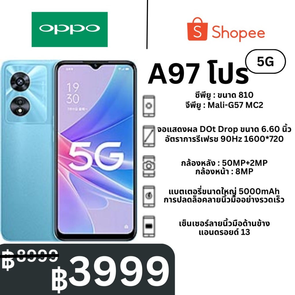 โทรศัพท์มือถือ ออปโป้ Oppo A97 5G (8G+256G) 33W โทรศัพท์มือถือชาร์จเร็ว 6.72 นิ้ว แบต 5000mAh