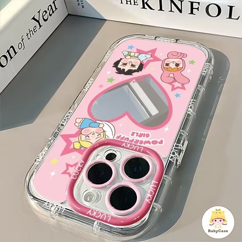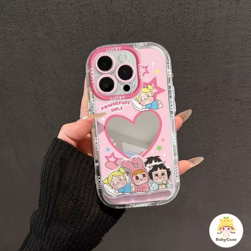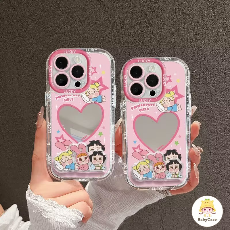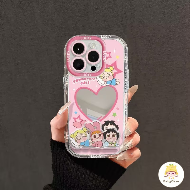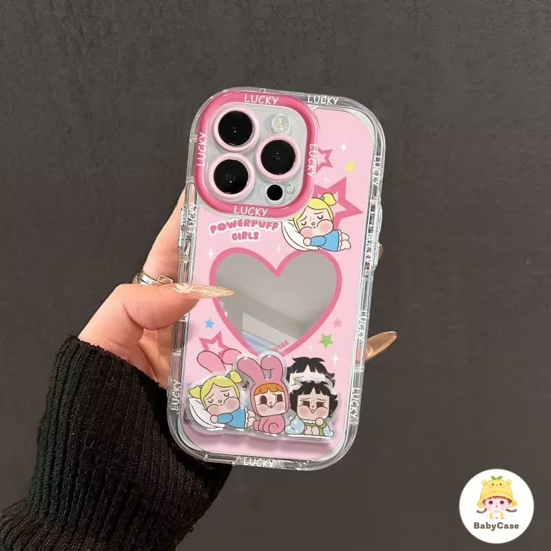 การ์ตูนน่ารักลายเดอะพาวเวอร์พัฟเกิร์ลส์ซีซ กระจกแต่งหน้า เคสไอโฟน 16 15 11 12 13 14 Pro Max 8 7 15 Plus XR X XS Max SE