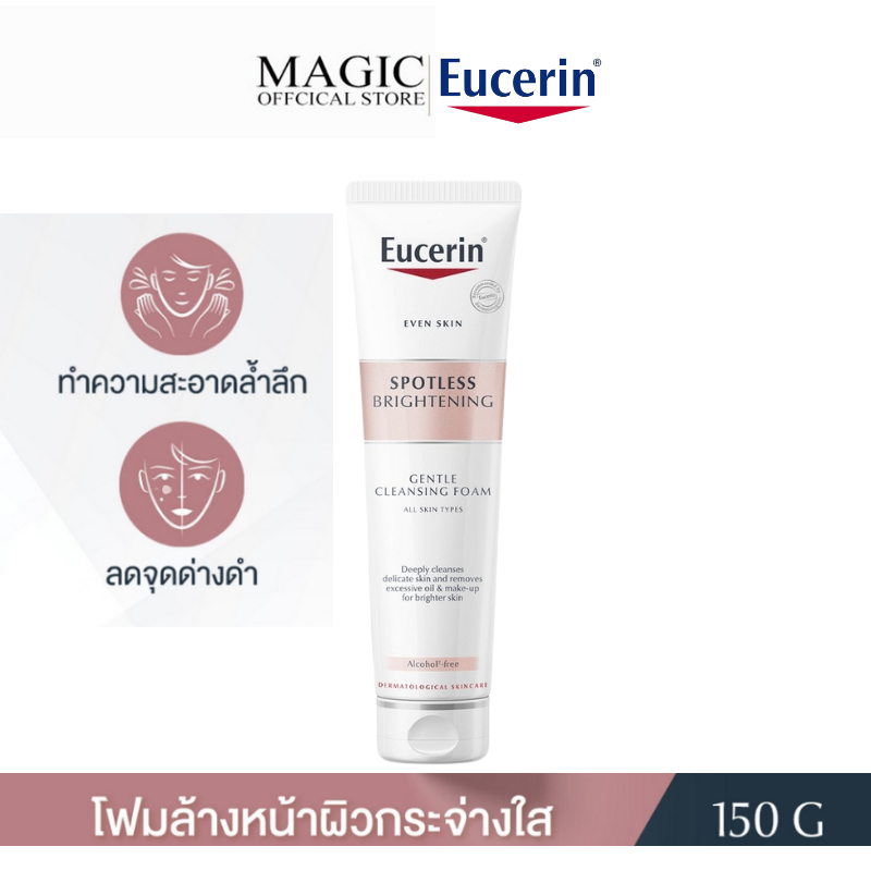 Eucerin SPOTLESS BRIGHTENING GENTLE CLEANSING FOAM 150g พร้อมให้ความชุ่มชื้นแก่ผิวหน้า ลดเลือนฝ้า กระ จุดด่างดำ .