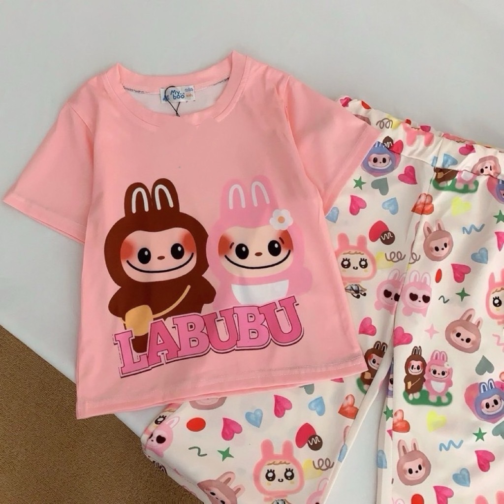 BB040 ชุดเซ็ตลูกสาว เสื้อสีชมพู+กางเกงขายาว พิมพ์ลายน้องลาบูบู้