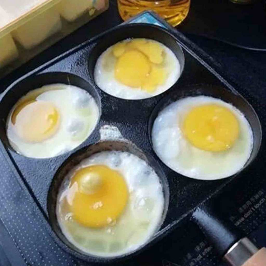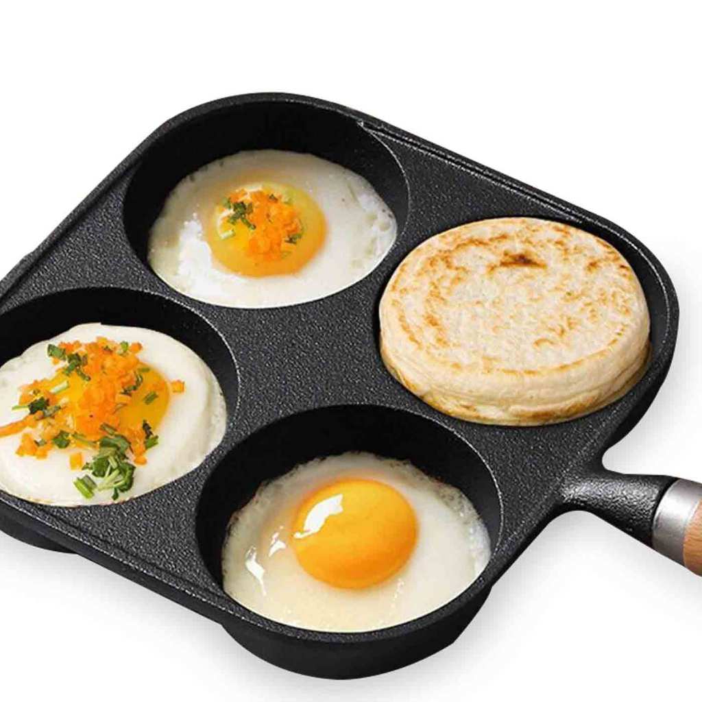 กระทะทอดไข่ดาว ทอดไข่ 4 หลุม Non-Stick ลายหินอ่อน สี่หลุม ไข่เกี๊ยวกระทะอาหารเช้า A2611