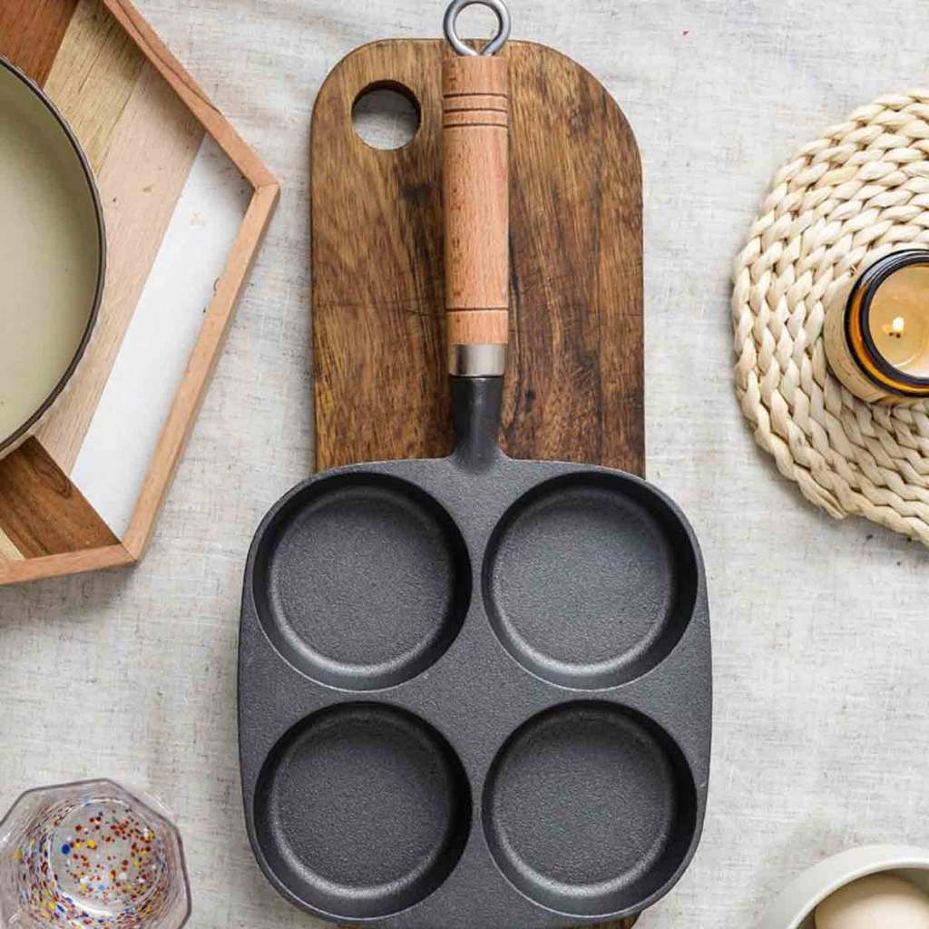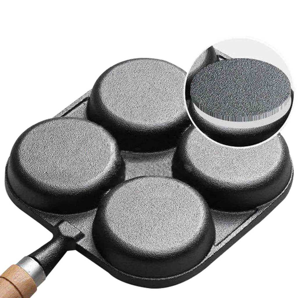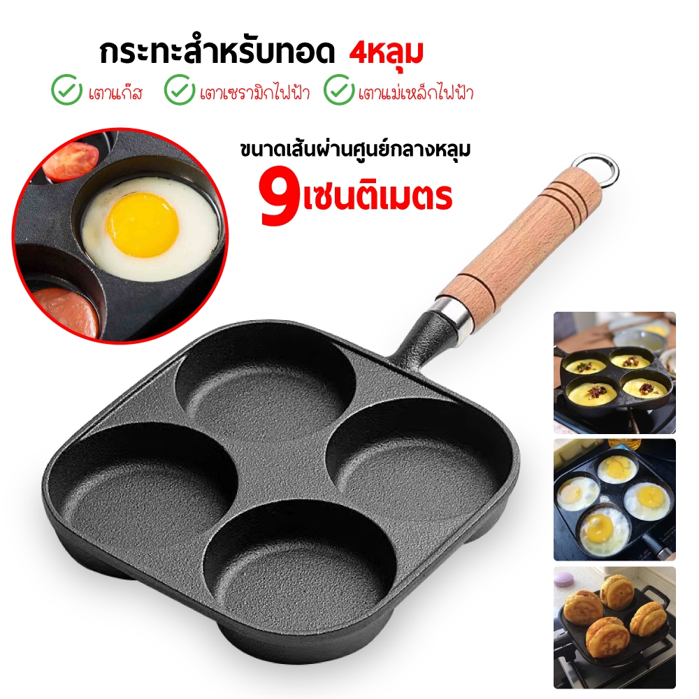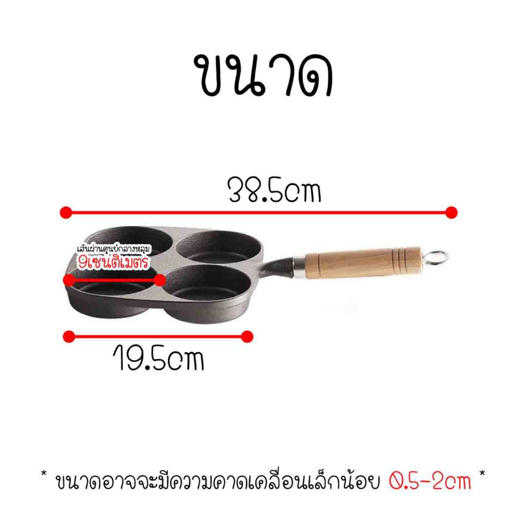 • กระทะ 4 หลุม กระทะสแตนเลส เคลือบหินแร่ ทอดง่าย ไม่ติดกระทะ • ด้ามจับกันความร้อน ด้ามจับยาวจับถนัดมือ • ขนาด เส้นผ่านศูนย์กลางต่อ 1 หลุม 9 เซนติเมตร ตัวกระทะหนา 2.4 เซนติเมตร ความยาวรวมด้ามจับ 35 เซนติเมตร(โดยประมาณ) • น้ำหนักประมาณ 800 กรัม • สามารถใช้ได้กับเตาแก๊ส เตาเซรามิกไฟฟ้า เตาแม่เหล็กไ