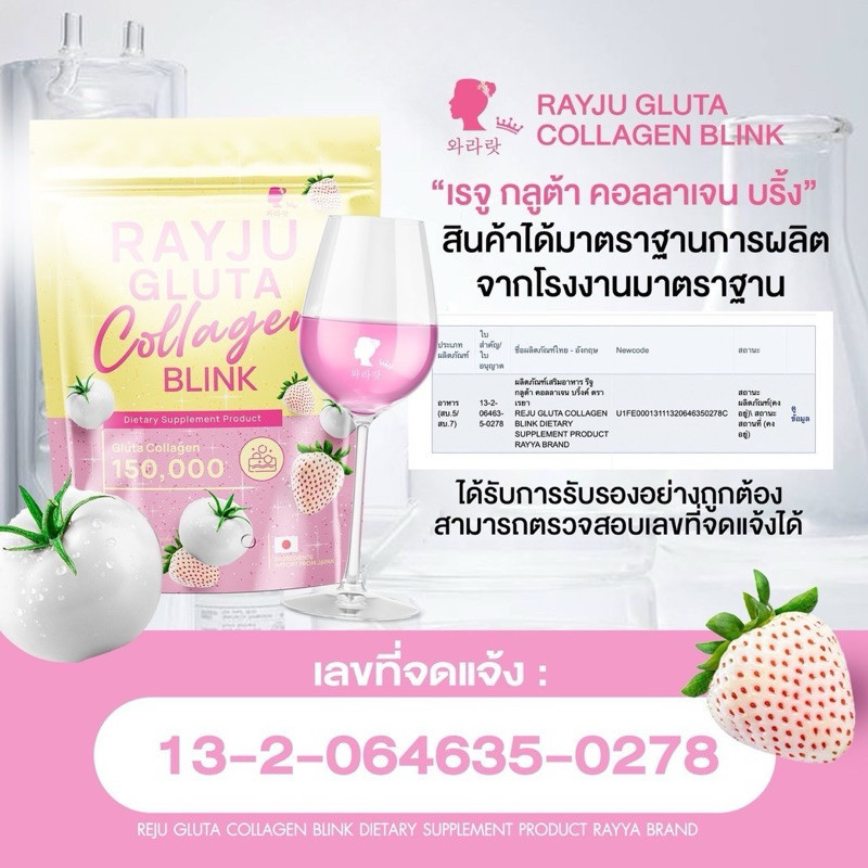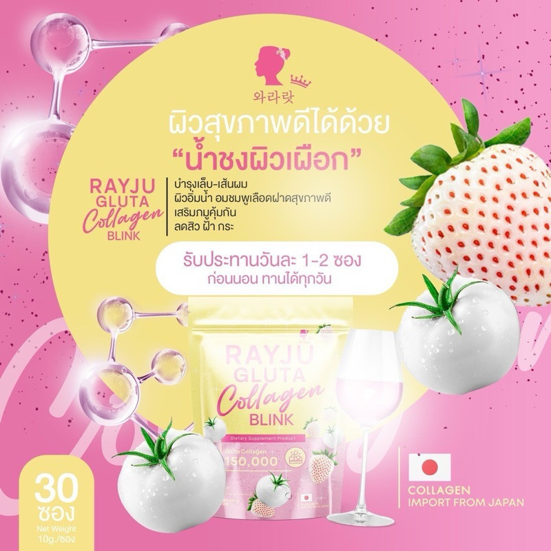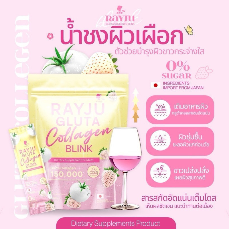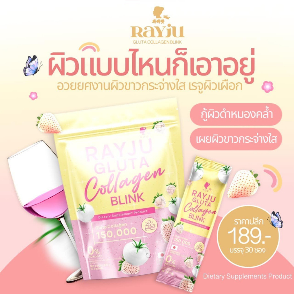 น้ำชงเรยาผิวเผือก Rayju Gluta Collagen Blink กลูต้า คอลลาเจนบำรุงผิวอย่างล้ำลึก บำรุงผิว ผม เล็บ