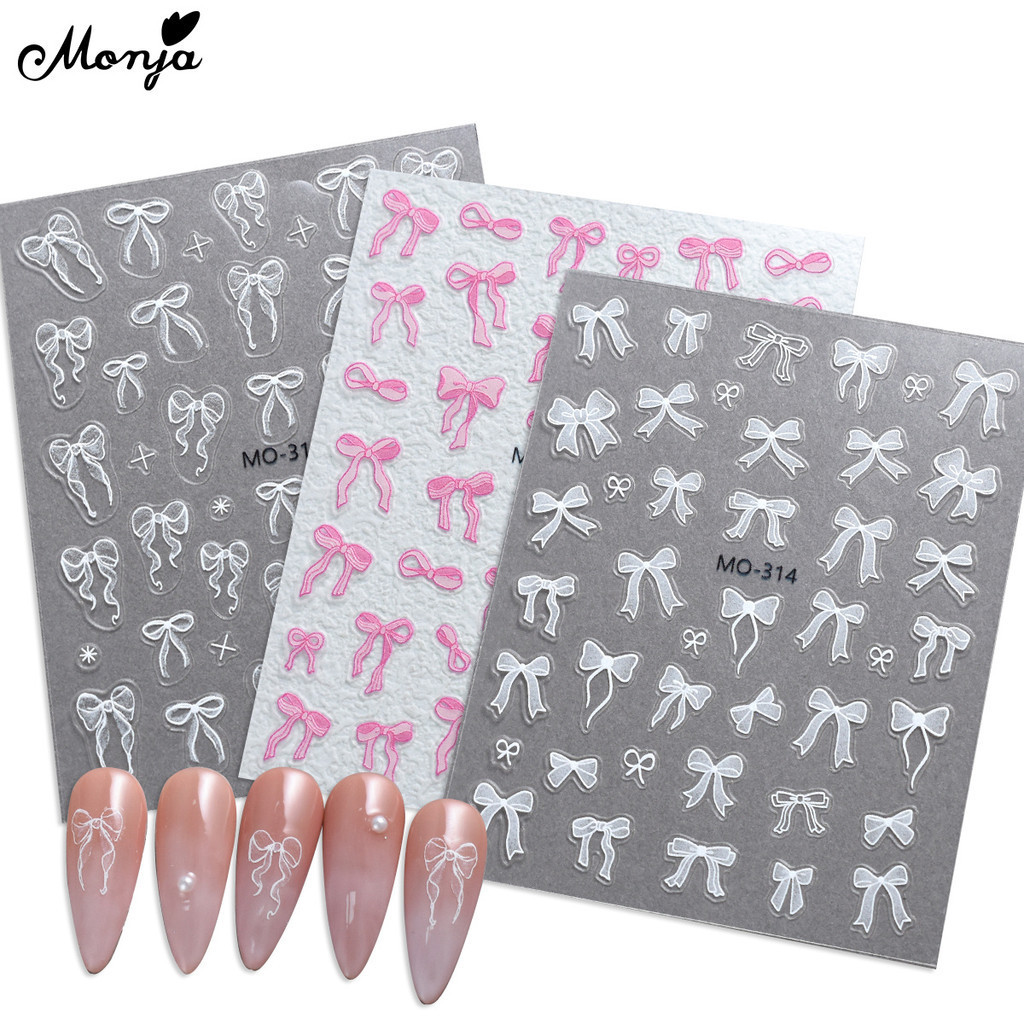 Monja 3D นูนสติกเกอร์เล็บบรรเทาผีเสื้อโบว์ Self กาว Bowknot Salon DIY ตกแต่งเล็บผีเสื้อเล็บสติกเกอร์