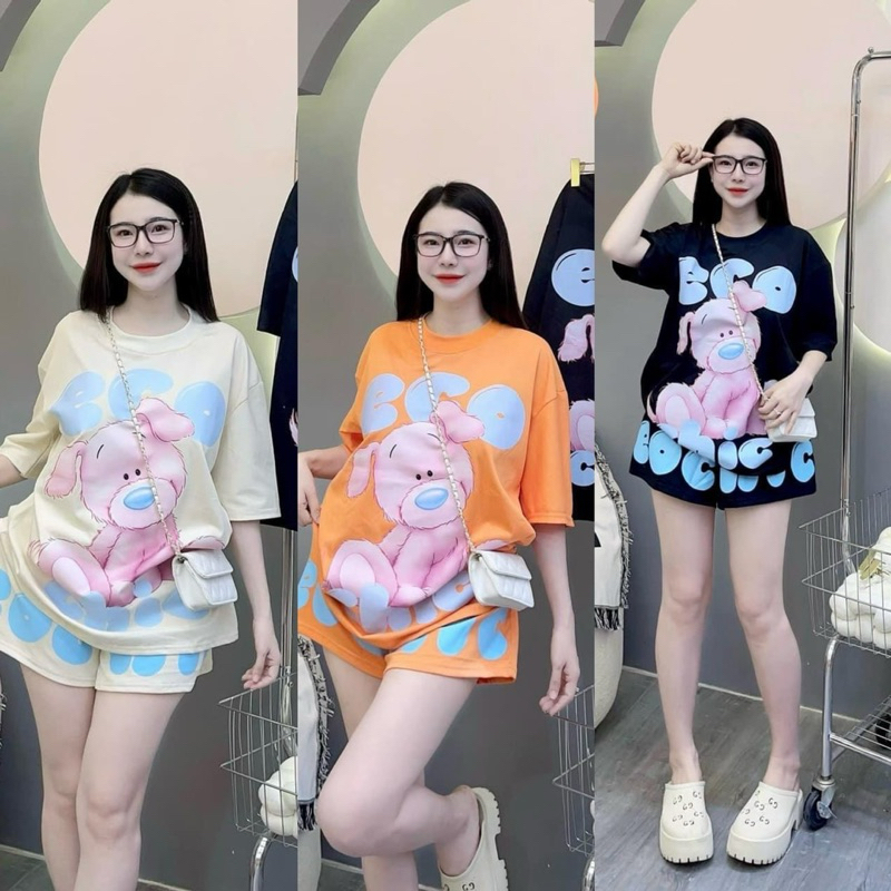 ขนาดฟรีไซส์ใส่สบายสาวอวบใส่ได้ พิมพ์ลายน้องหมีสีชมพู มีสามสี อก40-44 ยาว26 เอว36 สพ40 ยาว15