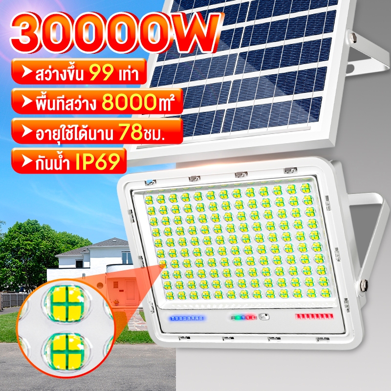 ไฟโซล่าเซลล์ 30000W ไฟโซล่าเซล Solar Light ไฟLED แสงสีขา กันน้ำ ไฟกลางแจ้งพลังงานแสงอาทิตย