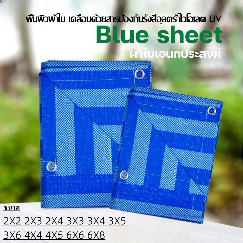 NEW ผ้าใบพลาสติกบลูชีท ผ้าเต็นท์ฟ้าขาว ผ้าใบกันแดดฝน ขนาด 2*2/2*3/2*4/3*3/3*4/3*5/4*4/3*6/4*5 เมตร