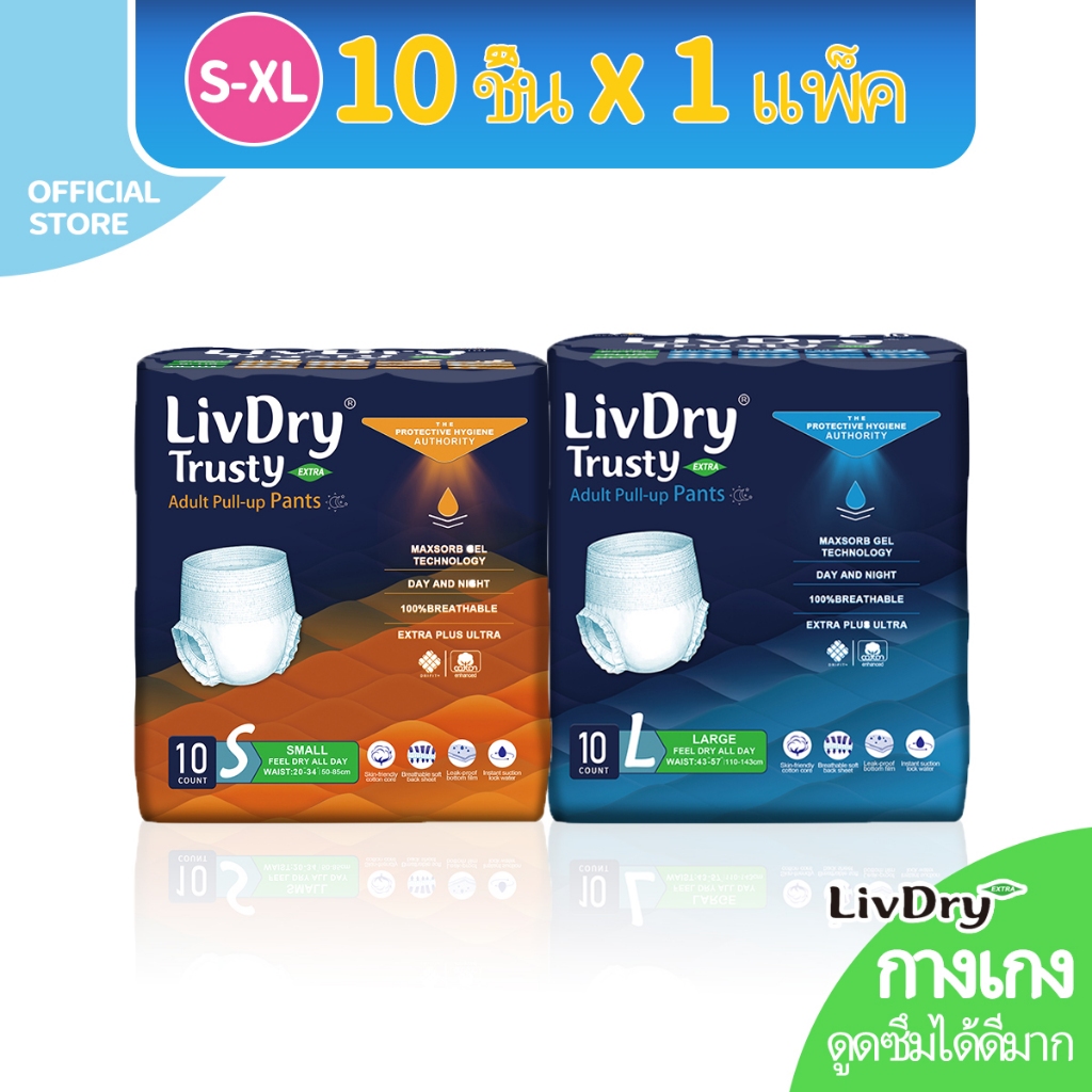 【ดูดซับน้ำได้ดีเยี่ยม! 】ผ้าอ้อมผู้ใหญ่ 10 ชิ้น ผ้าอ้อมผู้ใหญ่ Livdry Extra ทุกเพศ สวมใส่ง่าย กางเกงดึงขึ้นสำหรับผู้ใหญ่