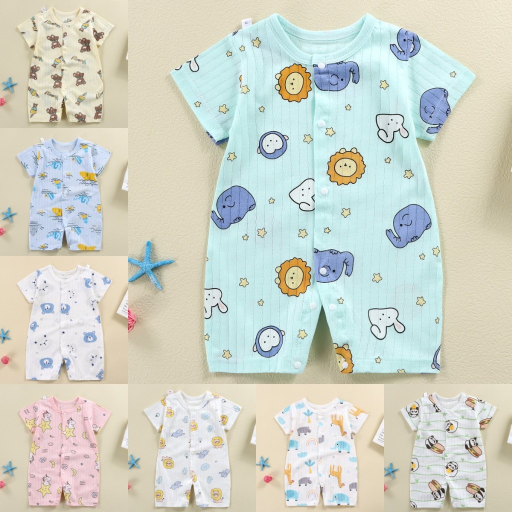 พร้อมส่ง เสื้อผ้าเด็กอ่อน เสื้อผ้าเด็กแรกเกิด บอดี้สูทผ้าร่องแบบกระดุมหน้าเด็กอ่อนขาสั้น เด็กหญิง เด็กผู้ชาย