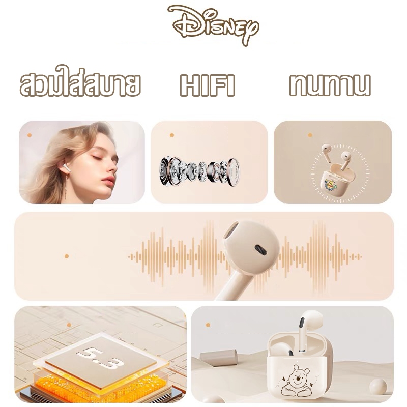 Disney หูฟัง ไร้สายบลูทูธ หูฟังบลูทูธ 5.3 Stereo HIFI Earphone IPX5 ของแท้100% Headset lOS WXZ03