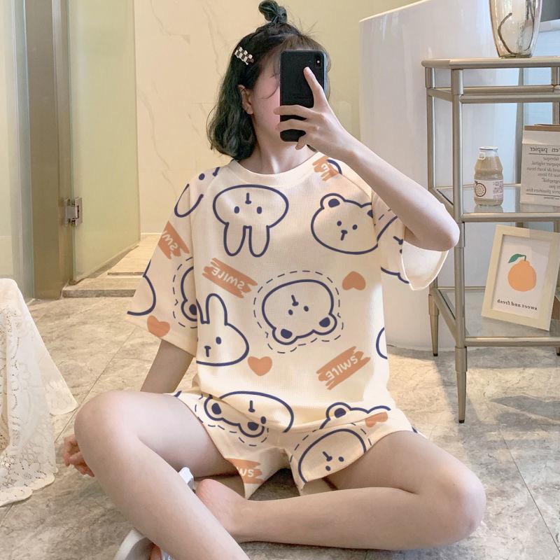 ชุดนอนการ์ตูน ชุดนอนผู้หญิง ชุดนอนแขนสั้นขาสั้น L-3XL(30-70โล)