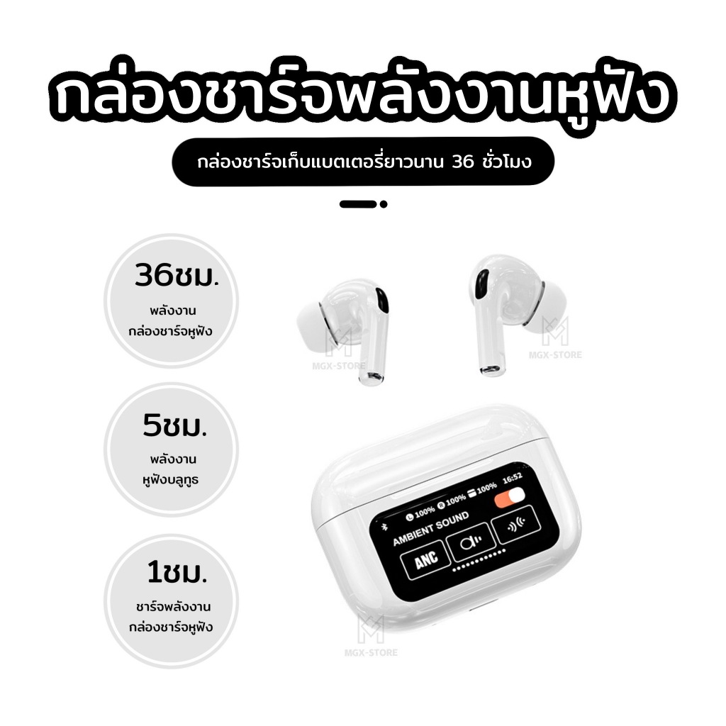 หูฟัง A9 Pro ANC รุ่นที่5 หูฟังบลูทูธพร้อมหน้าจอทัชสกรีน หูฟังบลูทูธ หูฟังไร้สาย เทคโนโลยีล้ำสมัย พร้อมบลูทูธ 5.4 เวอร์ช