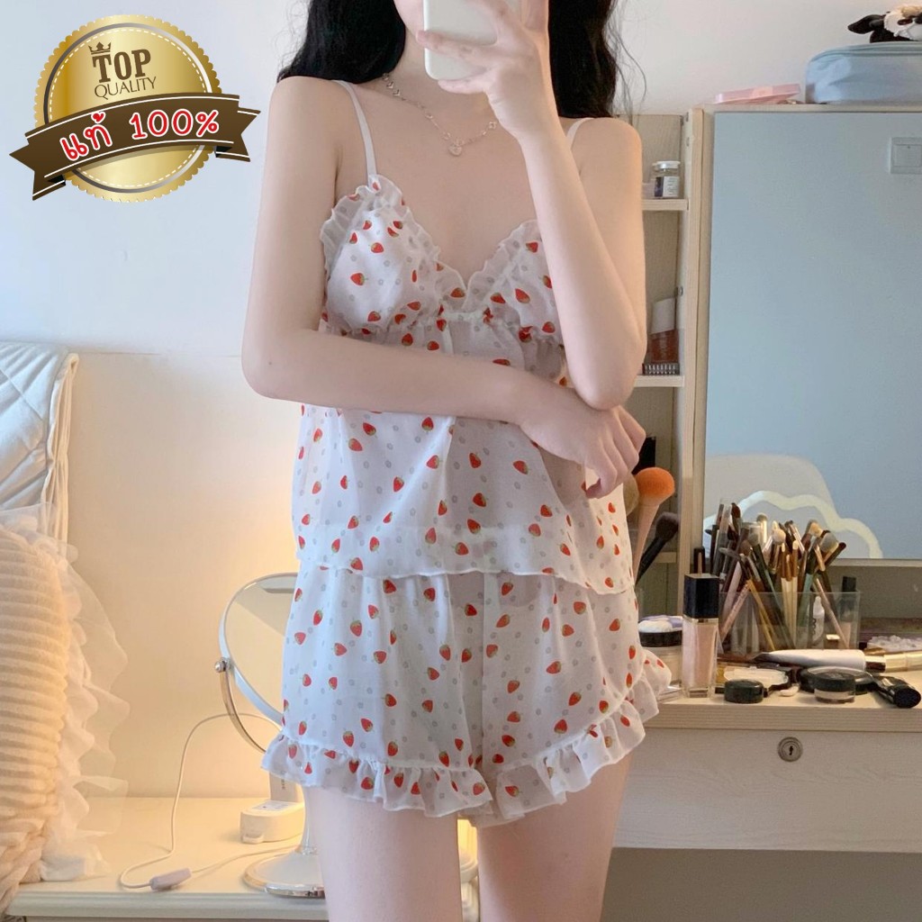 BIG SEXY เซ็ต2ชิ้น ชุดนอน ชุดนอนเซ็ท👑 💫 มีหลายไซต์ M-5XL นน 40-100kg สายเดี่ยวลายสตอเบอร์รี่ ผ้าซีฟอง S-334