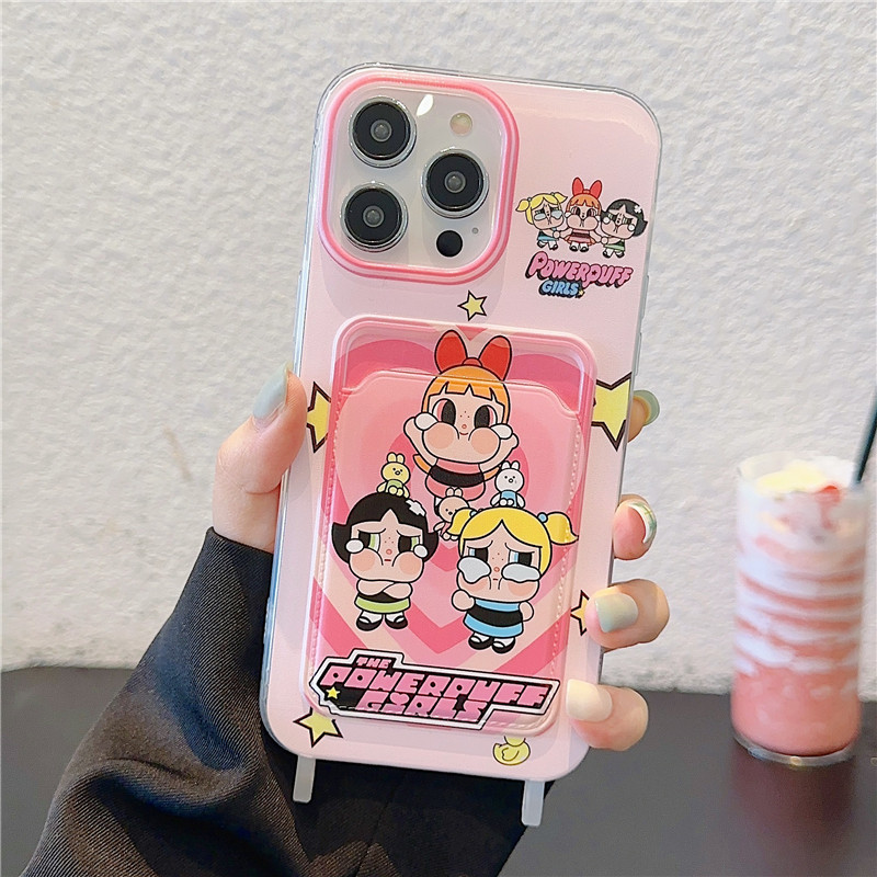 ใช้งานร่วมกับสําหรับ IPhone 15 14 13 12 11 Pro Max X XR Max 7 8 Plus INS การ์ตูนน่ารัก Powerpuff Girls เคสโทรศัพท์ Soft