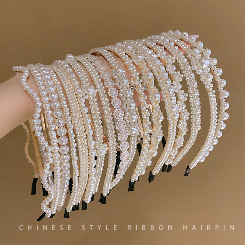 อารมณ์ที่สง่างามมุกคาดศีรษะหญิงฤดูร้อนสูงกะโหลกด้านบนที่เรียบง่ายอุปกรณ์ผมคาดศีรษะ ชม. หูฟัง