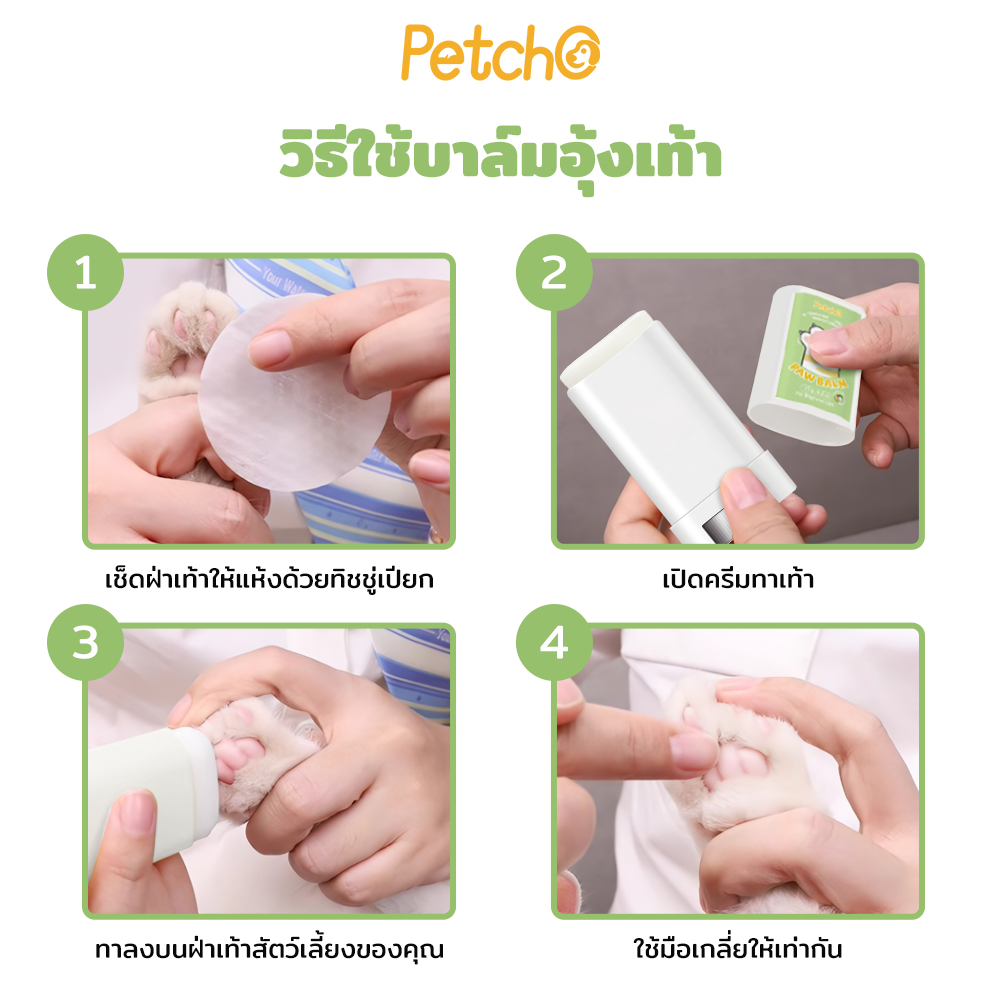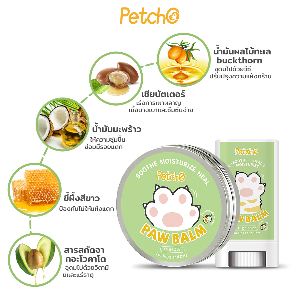Petcho บาล์มบำรุงอุ้งเท้าสัตว์เลี้ยง บาล์มสำหรับสัตว์เลี้ยง ทาบริเวณที่แห้งกร้านให้ผิวนุ่ม บำรุงอุ้งเท้า Paw Care