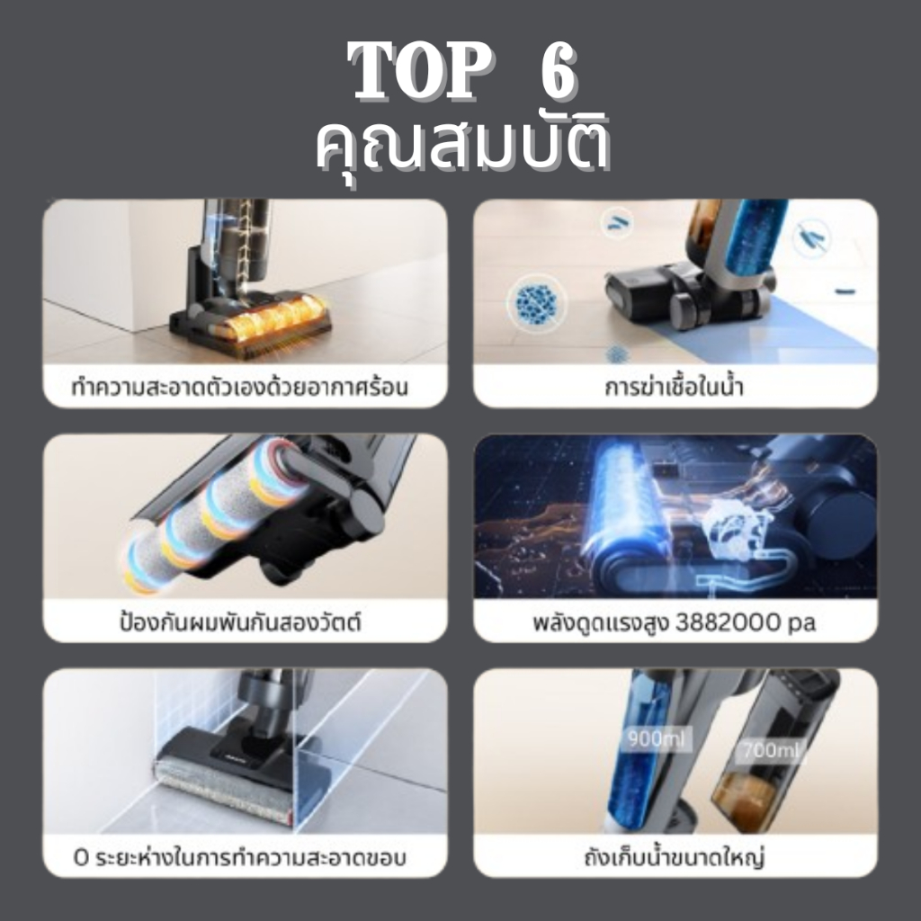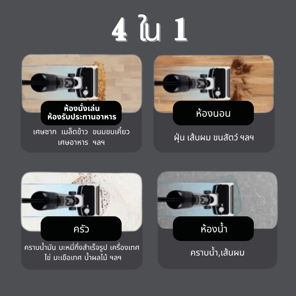 ... ้างพร้อมกันช่วยขจัดสิ่งสกปรก รอยเปื้อน น้ำหก และความยุ่งเหยิงบนพื้นแข็งอื่นๆ ️【การทำความสะอาดตัวเองและการทำให้แห้งด้วยลมร้อนของลูกกลิ้งแปรง】แปรงจะถูกล้าง หมุน ขูดทำความสะอาดและทำให้แห้งอย่างทั่วถึงด้วยลมร้อนเพื่อป้องกันโรคราน้ำค้างและกลิ่น ️【การฆ่าเชื้อด้วยน้ำอิเล็กโทรไลต์ 99.9% | กระบวนการทำความสะอาดที่ปลอดภัยกว่า】สร้างน้ำอิเล็กโทรไลต์ด้วยการคลิกเพียงครั้งเดียว โหมดสะอาดล้ำลึกเพื่อกำจัดแบคทีเรียและรักษาสุขอนามัยตลอดเวลา ️【สามโหมดสำหรับการทำความสะอาดอเนกประสงค์】ปรับแต่งความต้องการในการทำความสะอาดของคุณด้วยโหมดอัตโนมัติสำหรับการทำความสะอาดขั้นพื้นฐาน โหมดพิเศษสำหรับการทำความสะอาดอย่างล้ำลึก และโหมดการดูดที่ดูดของเหลวโดยไม่ต้องถู ️【การตรวจจับสิ่งสกปรกอย่างชาญฉลาด – การดูดในอุดมคติสำหรับทุกสิ่งสกปรก】ปรับการดูดตามสิ่งสกปรกที่ตรวจพบ และรับรองว่าสิ่งสกปรกทั้งหมดจะถูกกำจัดในรอบแรก ️【หน้าจอ LED อัจฉริยะและเสียงเตือน】ดูแบตเตอรี่ที่เหลืออยู่ ความสะอาดของพื้น และสถานะการทำงานได้อย่างรวดเร็ว ️ข้อมูลจำเพาะ: ชื่อผลิตภัณฑ์: X7 Pro เครื่องดูดฝุ่นแบบเปียกและแห้ง กำลังไฟ: 300W น้ำหนักเครื่อง : 4.1 kg ความจุแบตเตอรี่: 6 x 4000mAh รันไทม์สูงสุด: 45 นาที เวลาในการชาร์จ: 4.5 ชม ถังน้ำสะอาด : 900ml แท้งค์น้ำใช้แล้ว : 900ml โหมดการทำงาน: โหมดอัตโนมัติ โหมดอัลตร้า และโหมดดูด ประเภทของแปรง: ลูกกลิ้งแปรงทำความสะอาดแบบ Edge-to-Edge มอเตอร์: ไร้แปรงถ่าน หน้าจอ: LED พรอมต์: ใช่ การตรวจจับข้อความ: ใช่ การทำความสะอาดตัวเอง: ใช่ ________________________________________________________________ ชื่อผลิตภัณฑ์: X8 Pro เครื่องดูดฝุ่นแบบเปียกและแห้ง กำลังไฟ: 300W น้ำหนักเครื่อง : 4.5 kg ความจุแบตเตอรี่: 6 x 4000mAh รันไทม์สูงสุด: 50 นาที เวลาในการชาร์จ: 4.5 ชม ถังน้ำสะอาด : 450ml แท้งค์น้ำใช้แล้ว : 750ml 2 ระดับ : Low Mode / High Mode มอเตอร์: ไร้แปรงถ่าน ดูดฝุ่น – ล้าง – ขัดถู ไปพร้อมๆกัน ไม่ว่าจะฝุ่นละออง เศษอาหาร คราบสกปรก ก็ทำความสะอาดได้ในขั้นตอนเดียว หน้าจอ: LED พรอมต์: ใช่ การตรวจจับข้อความ: ใช่ การทำความสะอาดตัวเอง: ใช่ ________________________________________________________________ ชื่อผลิตภัณฑ์: X9 Pro เครื่องดูดฝุ่นแบบเปียกและแห้ง กำลังไฟ: 300W น้ำหนักเครื่อง : 4.8 kg ความจุแบตเตอรี่: 6 x 6500mAh รันไทม์สูงสุด: 55 นาที เวลาในการชาร์จ: 5 ชม ถังน้ำสะอาด: 800มล ถังบำบัดน้ำเสีย: 900ml การทำความสะอาดแปรง: ทำความสะอาดอัตโนมัติ; การอบแห้งด้วยลมร้อน ฆ่าเชื้อได้ 99.9% หน้าจอ: LED พรอมต์: ใช่ การตรวจจับข้อความ: ใช่ การทำความสะอาดตัวเอง: ใช่ 🎈1 x โฮสต์การผลิต 🎈1 x อแดปเตอร์ 🎈1 x HEPA 🎈1 x แปรงทำความสะอาดทูอินวัน 🎈1 x หนังสือคำแนะนำ 🎈1 x แท่นวาง