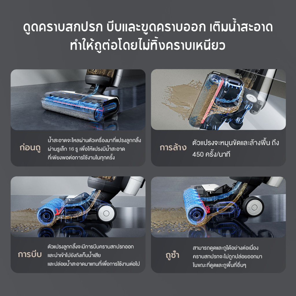 🔥-โปรโมชั่น- 🔥 กรุณาส่งข้อความแชทกับเราเพื่อรับบัตรกํานัลสองร้อยบาท เราจะส่งคุณโดยตรง 【อัปเกรด Dual Edge Cleaning 】การออกแบบการทำความสะอาดแบบ edge-to-edge ที่ได้รับการอัปเกรดช่วยจัดการกับมุมที่ยากต่อการเข้าถึงและทำความสะอาดตามฐาน ️【ทำความสะอาดและเช็ดให้แห้งจากขอบถึงขอบ】การดูดฝุ่น ถูพื้น และซักล