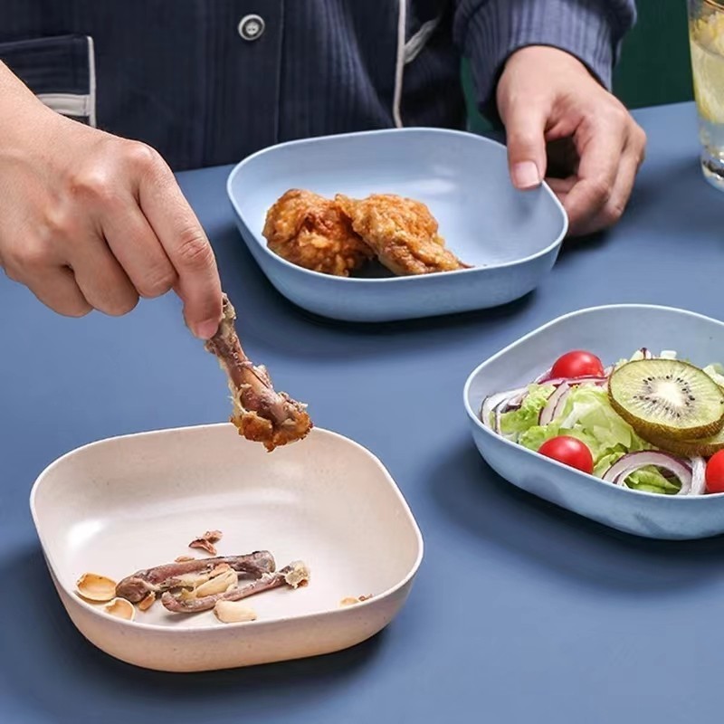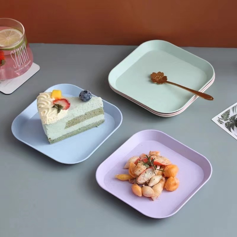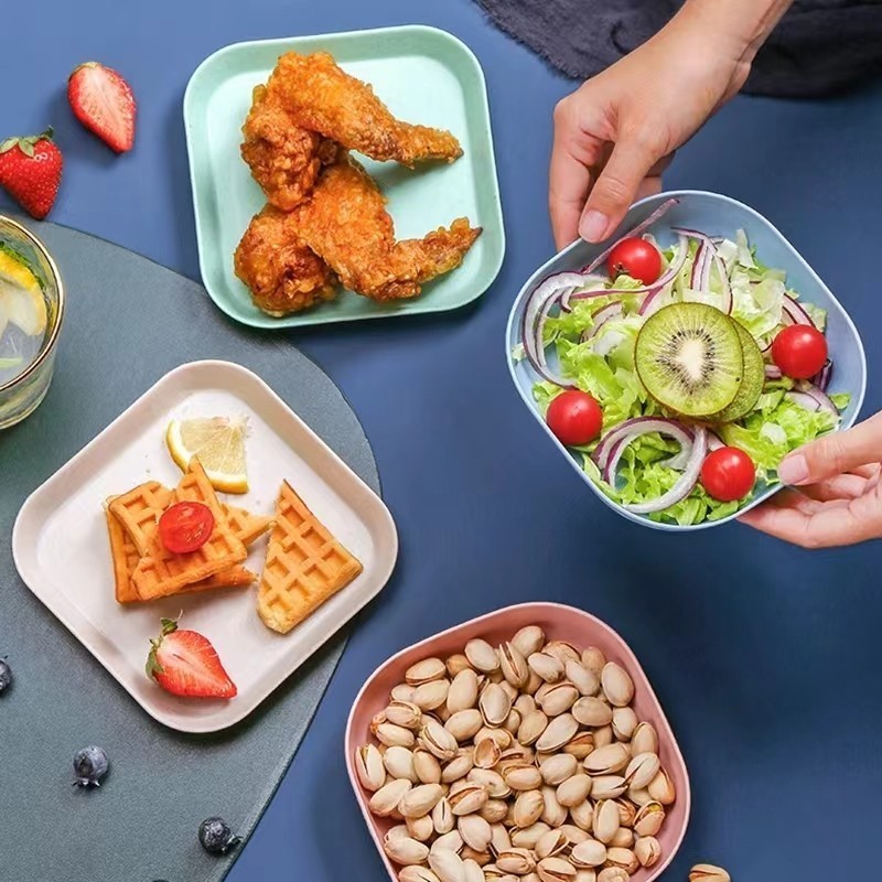 ถาดฟางข้าวสาลี อเนกประสงค์ จานพลาสติก ขนาดเล็ก ทรงสี่เหลี่ยม ทำจากฟางข้าวสาลี