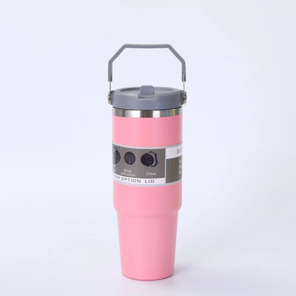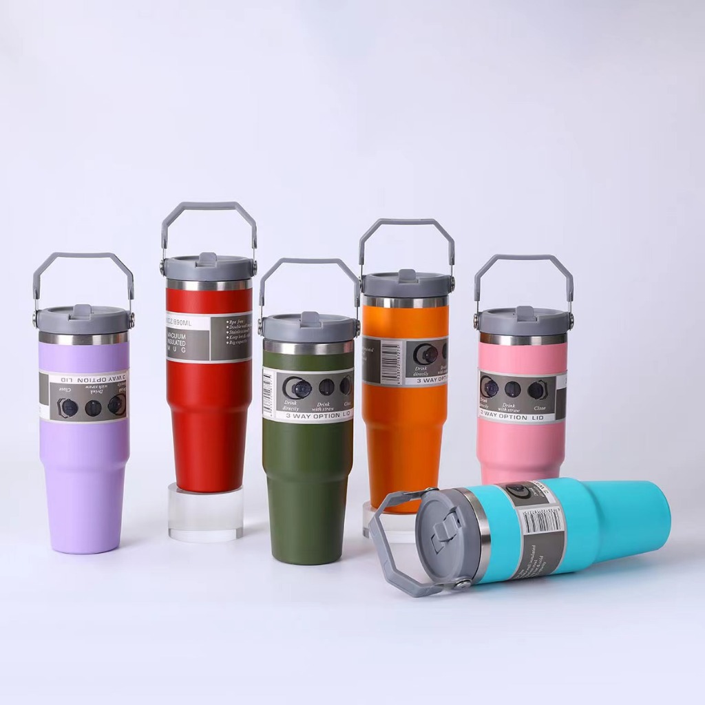 แก้วสแตนเลส304 รุ่นมีหูหิ้วมีหลอด แก้วเก็บความเย็น แก้วนํ้าเก็บอุณหภูมิ มีให้เลือกหลากหลายสี ขนาด 890 มล.