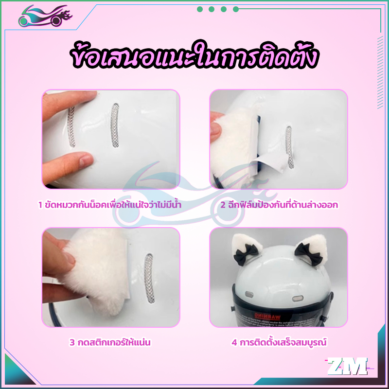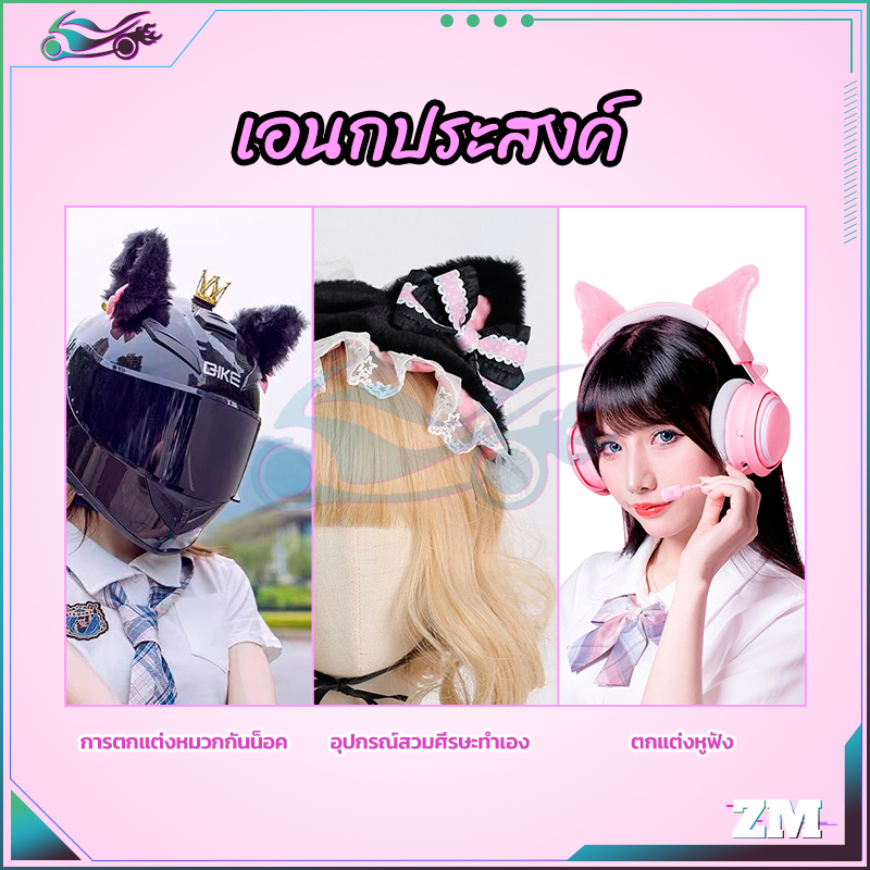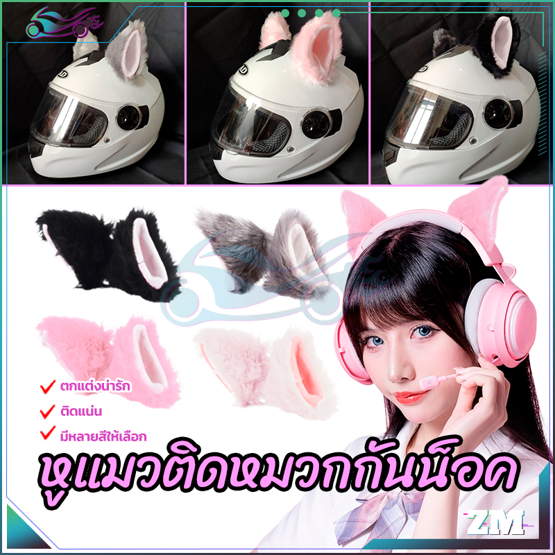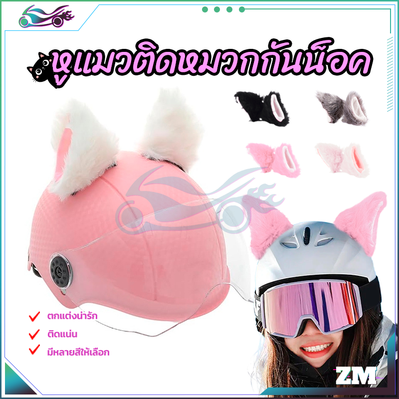 ตุ๊กตาแมวหูหมวกกันน็อคตกแต่ง หูแมวติดหมวกกันน็อค กันแดด กันลม ขาวในชมพู ชมพูในขาว ดำในขาว เทาในขาว