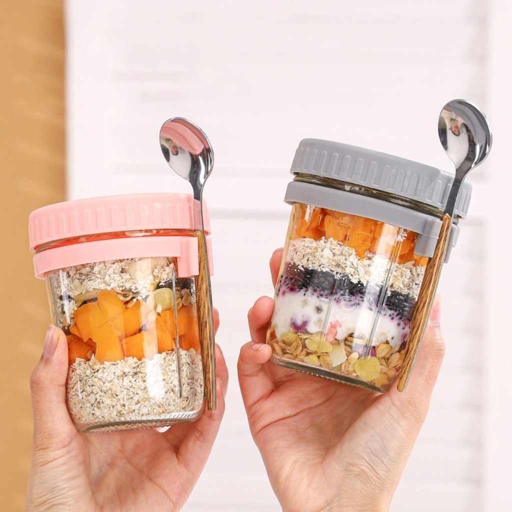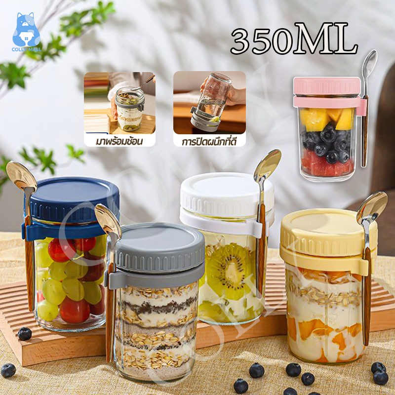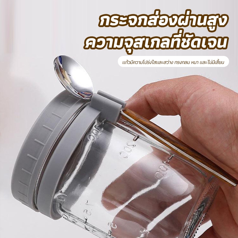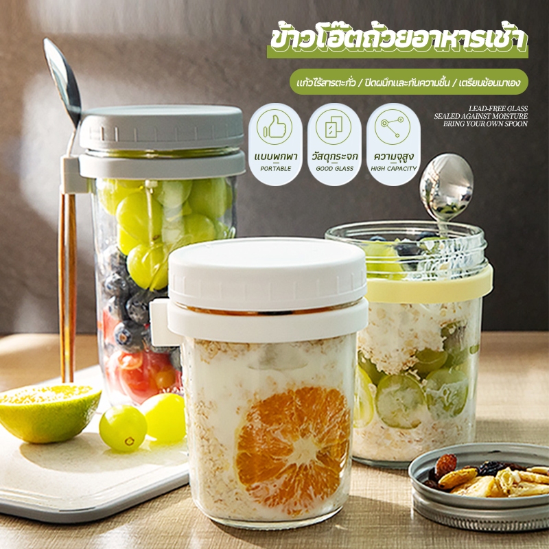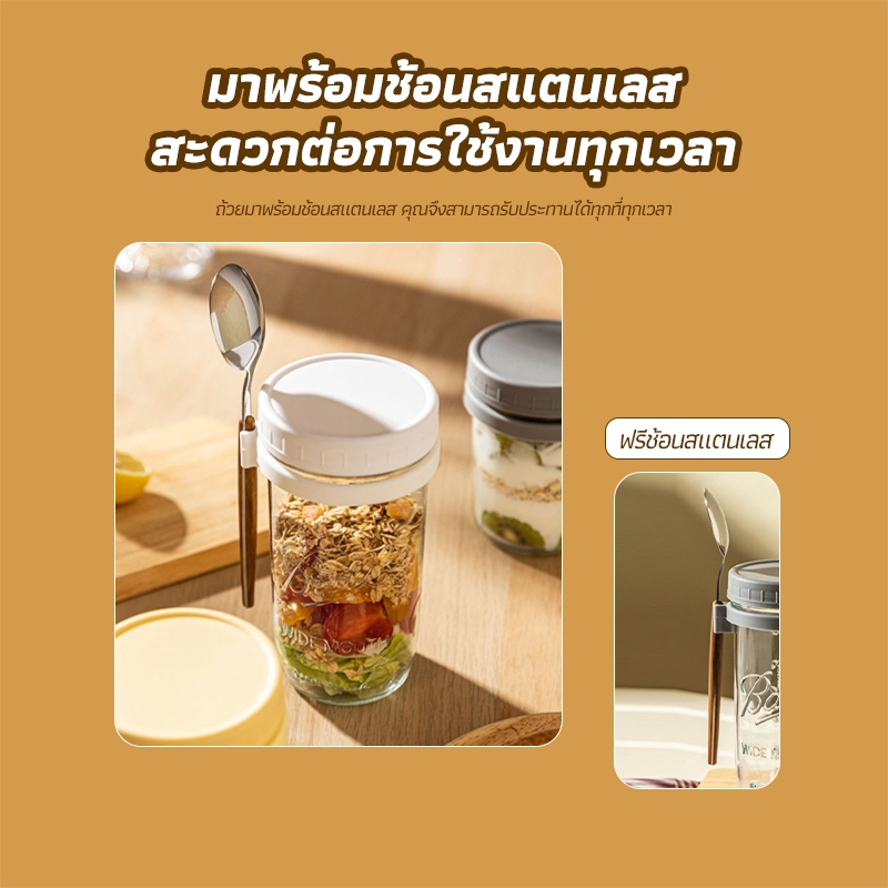 🔥ถ้วยแก้ว แก้วอาหารเช้า มีฝาปิดและช้อน กาแฟ ถ้วยข้าวโอ๊ต การปิดผนึกที่ดี อเนกประสงค์ สําหรับเก็บธัญพืช ผลไม้ข้าวกระป๋อง