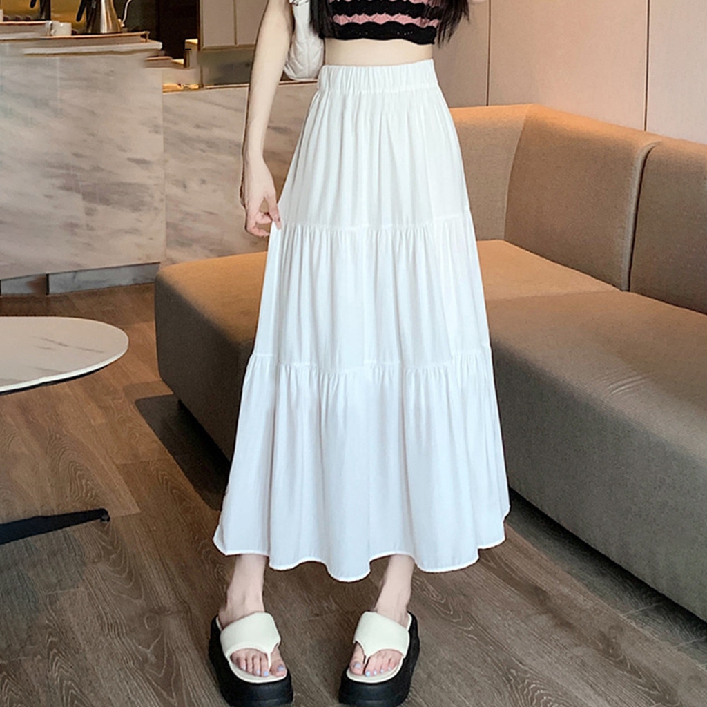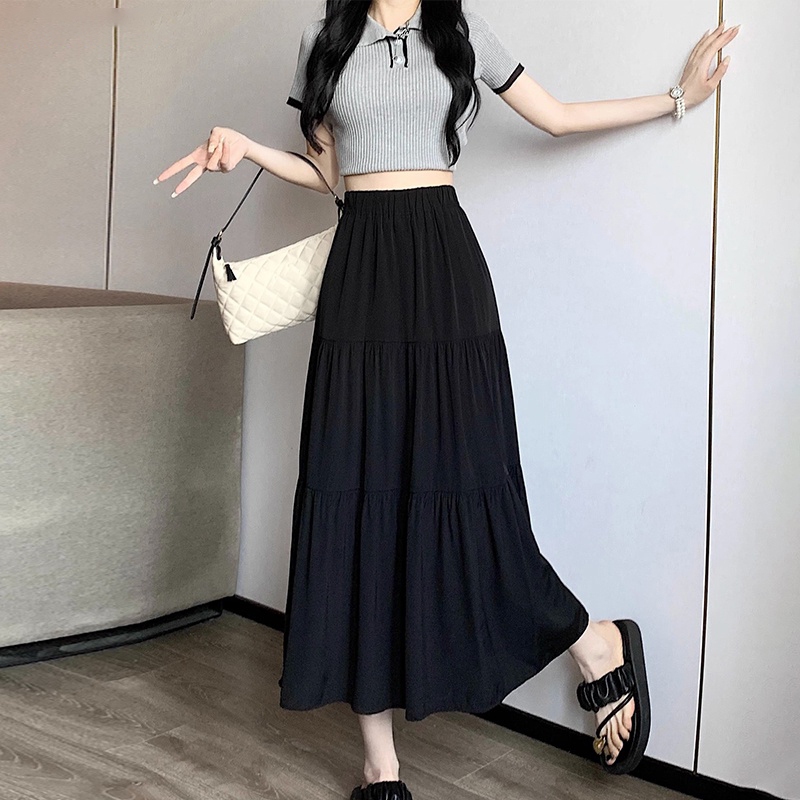 พร้อมส่ง กระโปรงยาวผ้าไหมอิตาลีมีซับในเอวยางยืด A4356