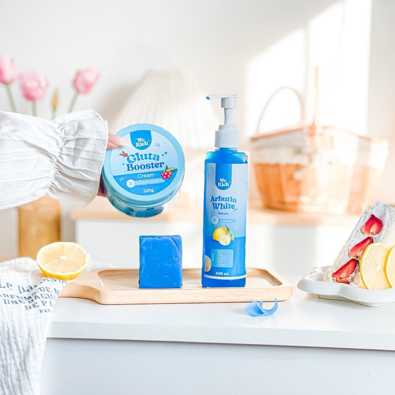 โดสฟ้า Arbutin White อาร์บูติน ไวท์ 1 เซ็ต มี 3 ชิ้น เซรั่มโดสฟ้าอาร์บูติน + หัวเชื้อกลูต้า + สบู่โกจิก สบู่โกจิก - ช่วยให้ผิวกระจ่างใส - ผลัดเซลล์ผิวเก่าที่ตายแล้วออกไป - ผิวพร้อมรับการบำรุง ผิวเนียนนุ่มชุ่มชื้น เซรั่มโดสฟ้าอาบูติน - ช่วยเรื่องความชุ่มชื้น - เปิดเซลล์ผิว ผลัดเซลล์ผิวให