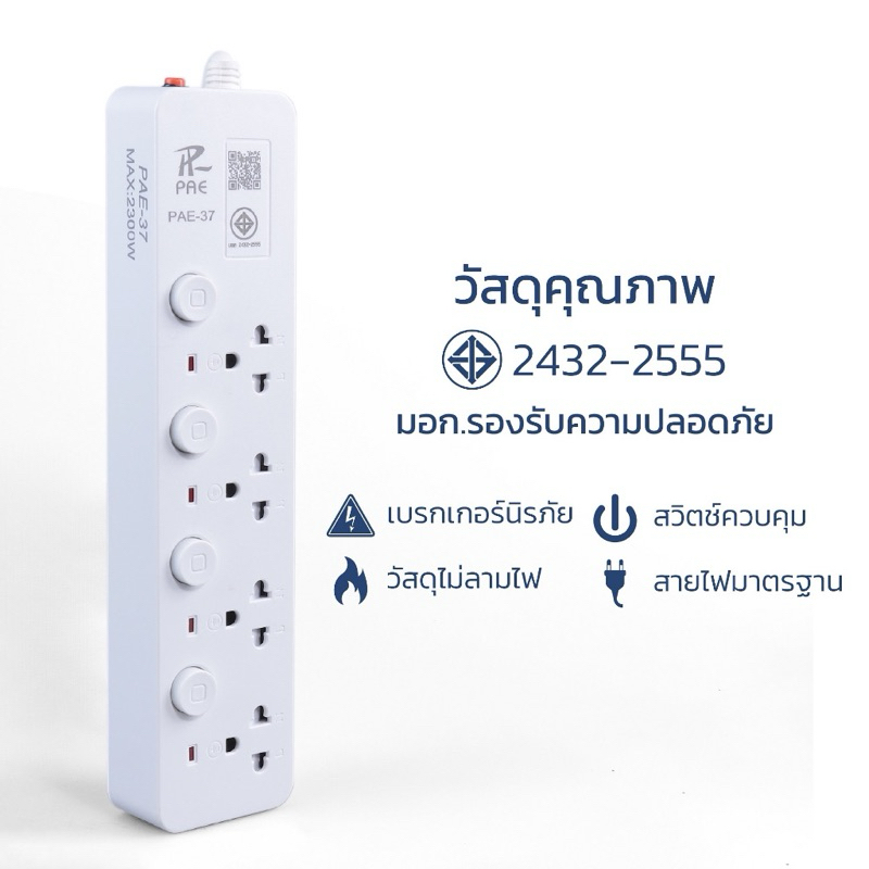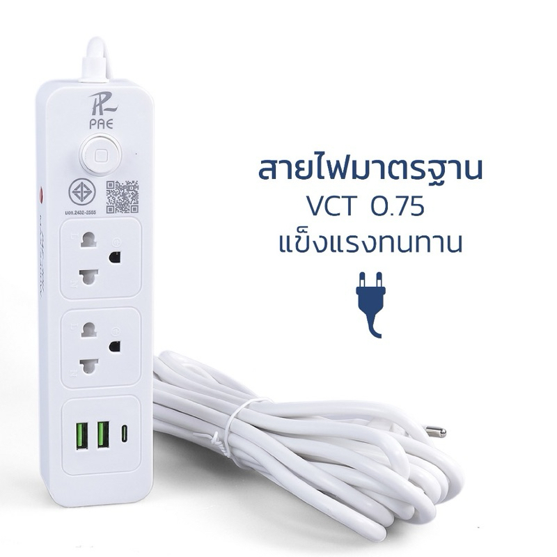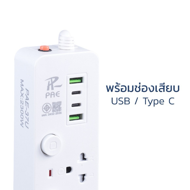 Paeปลั๊กไฟ usb รางปลั๊กไฟ ปลั๊กสามตา สวิตช์ปิด-เปิด มาตรฐาน คุณภาพสูง มอก. มีช่อง USB ช่อง Type-C