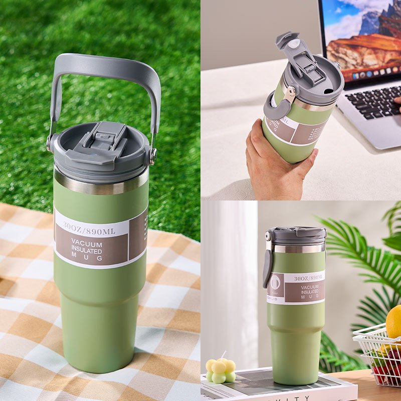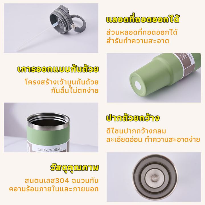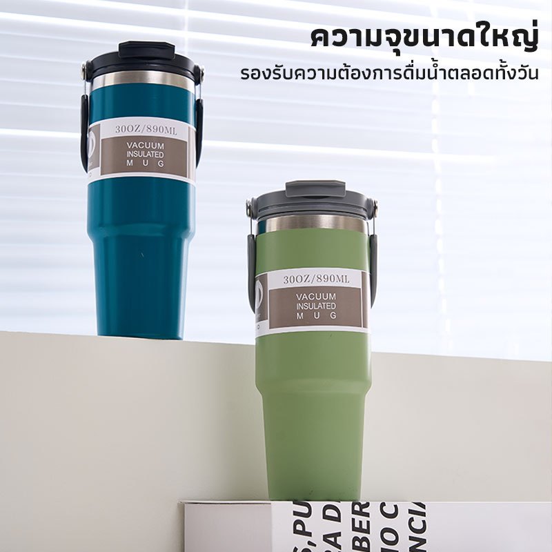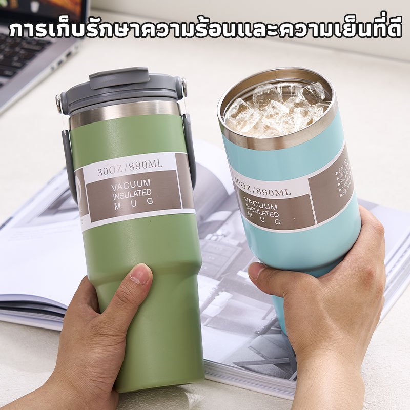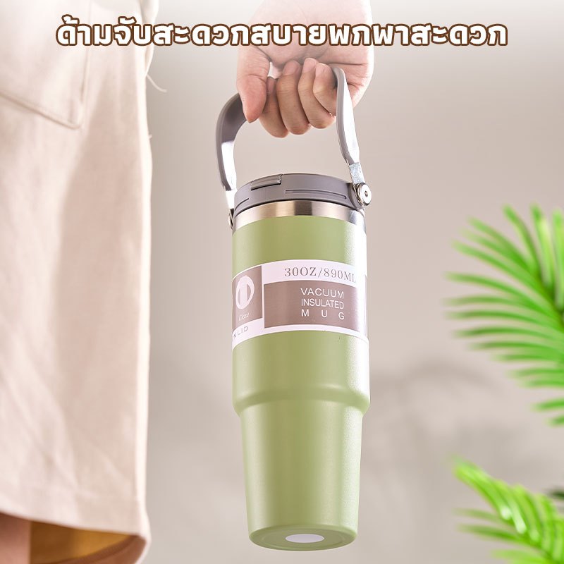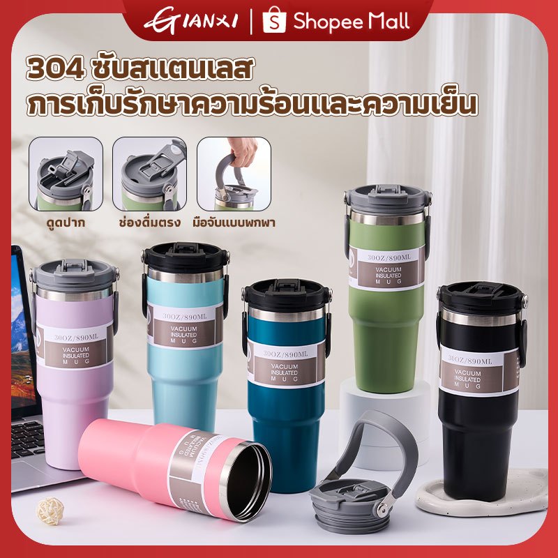 GIANXI【มีอยู่ในสต็อก】แก้วเก็บความเย็น แก้วสแตนเลส304 แก้วเก็บความร้อนเเละเย็น รุ่นมีหูหิ้วมีหลอด มีหูหิ้วรุ่นฝา 2 หัวแก้วกาแฟ ใหม่6สี กระติกน้ําเก็บความเย็น890 มล