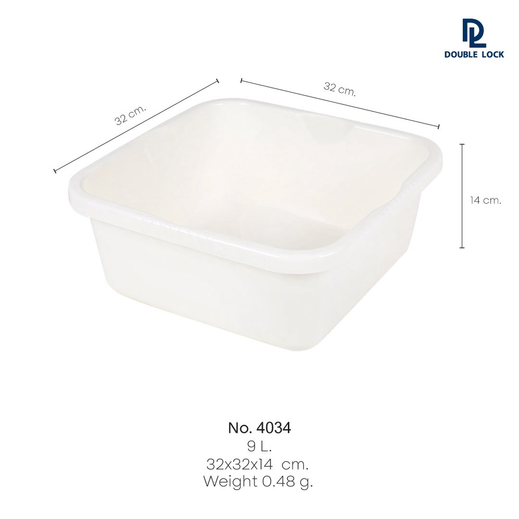 Double Lock กะละมังซักผ้า กะละมัง ทรงเหลี่ยม พลาสติกเนื้อหนา ความจุ 9 ลิตร รุ่น 4030,4034.4038