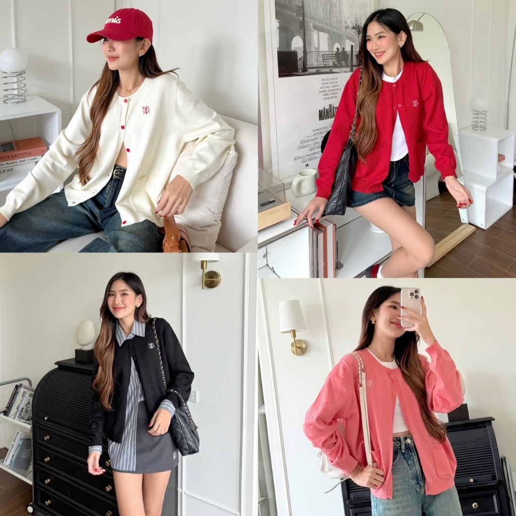 [พรีสี Red Velvet, Black, Cherry Red 15-20วัน]NICHARISSHOP - เสื้อคาร์ดิแกน NR Signature Cardigan