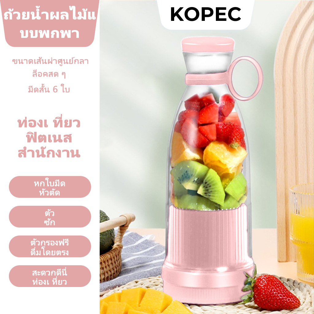 【KOPEC】ขวดปั่นน้ำผลไม้ 420ml เครื่องปั่นน้ําผลไม้พกพา แก้วปั่นผลไม้ 6 ใบมีด ที่ปั่นน้ําผลไม้ แก้วปั่นพกพา ชาร์จ USB