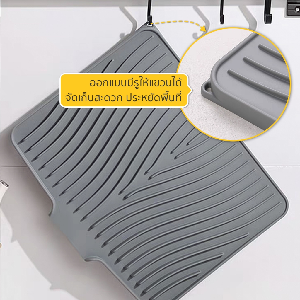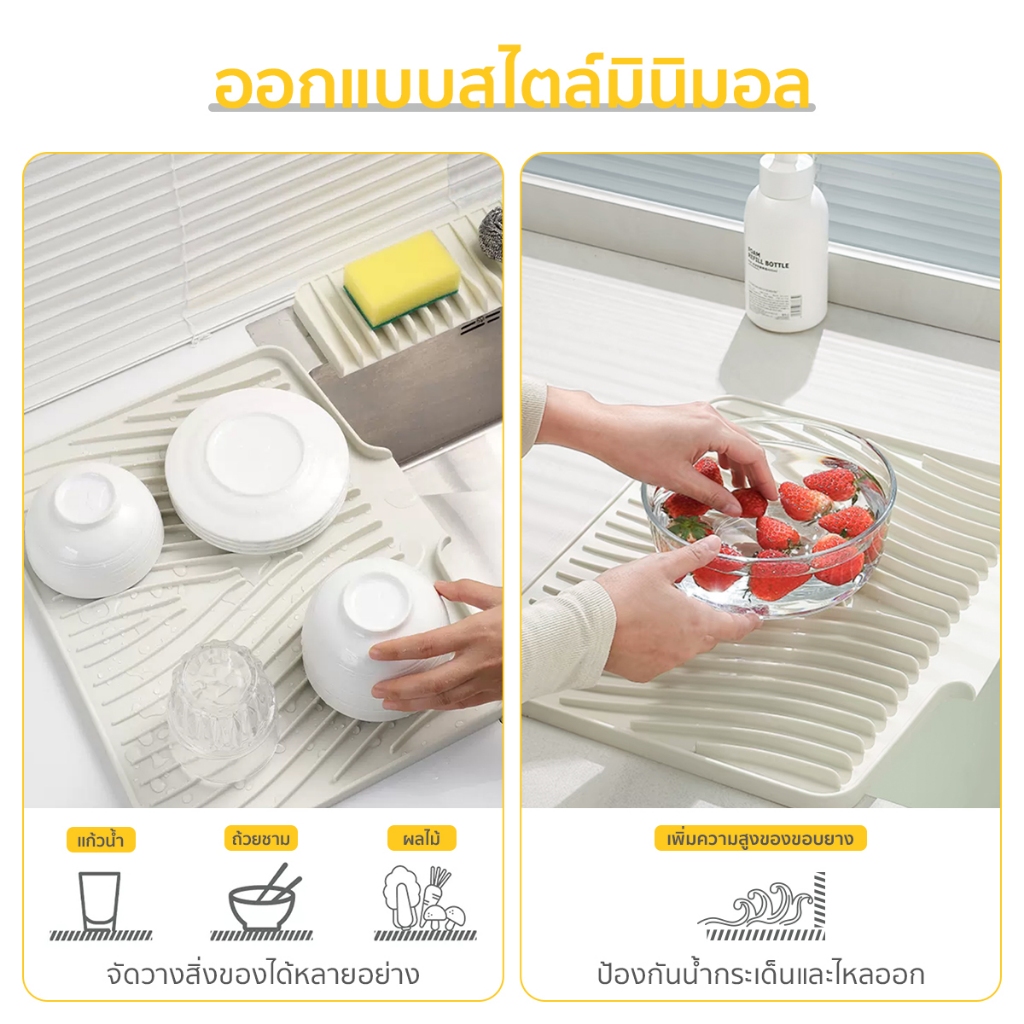 แผ่นซิลิโคนระบายน้ำลาดเอียง ถาดรอง ที่คว่ำแก้ว ถาดซิลิโคนเกรดอาหาร สําหรับครัวอ่างล้างจานรองแก้วชา และกาแฟ 1. วัสดุซิลิโคน: ทำจากวัสดุซิลิโคนเกรดอาหารไม่แตกง่ายกันน้ำและกันสนิม 2. แผ่นระบายน้ำนุ่มและพับเก็บได้ซึ่งติดตั้งง่าย 3. วัสดุซิลิโคนการดูดซับที่มั่นคง 4. ทำความสะอาดห้องครัวห้องน้ำเคาน์เ