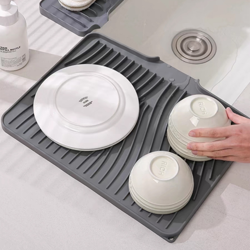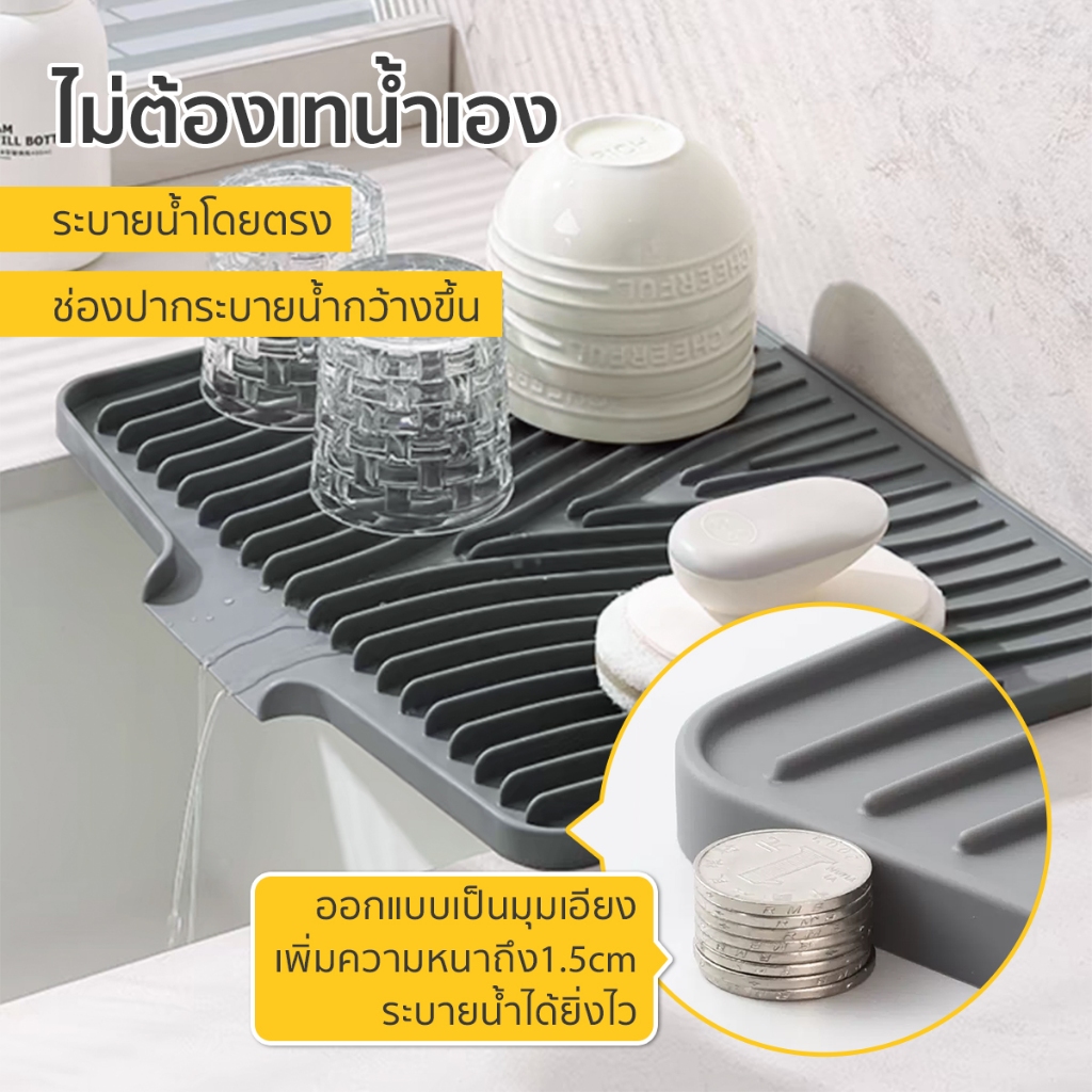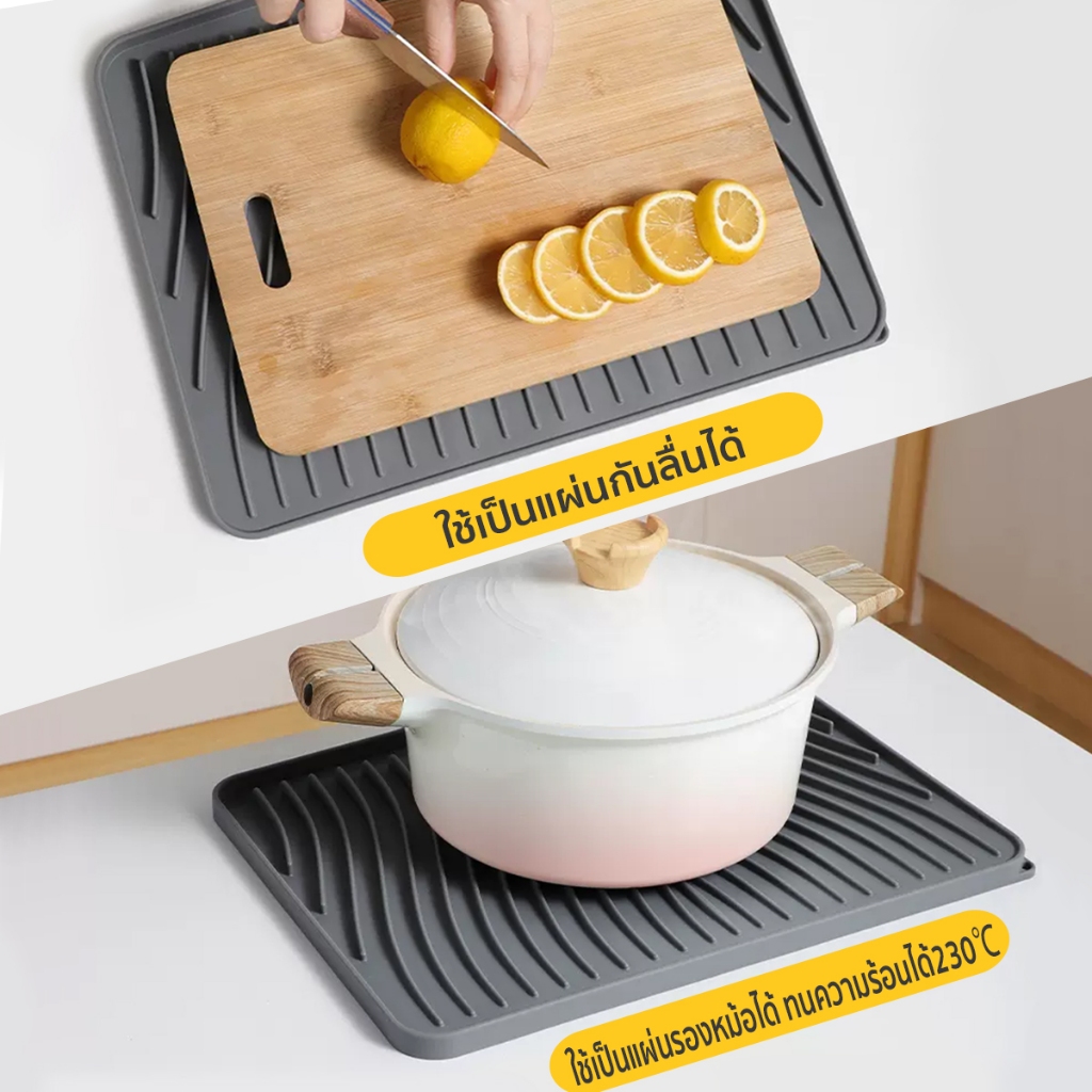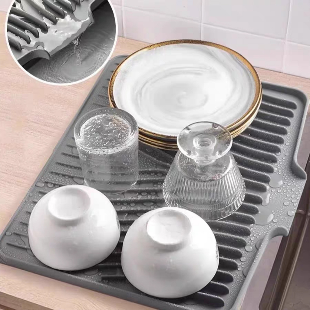 แผ่นซิลิโคนระบายน้ำ ถาดรอง ที่คว่ำแก้ว ถาดซิลิโคนเกรดอาหาร สําหรับครัวอ่างล้างจานรองแก้วชา และกาแฟ