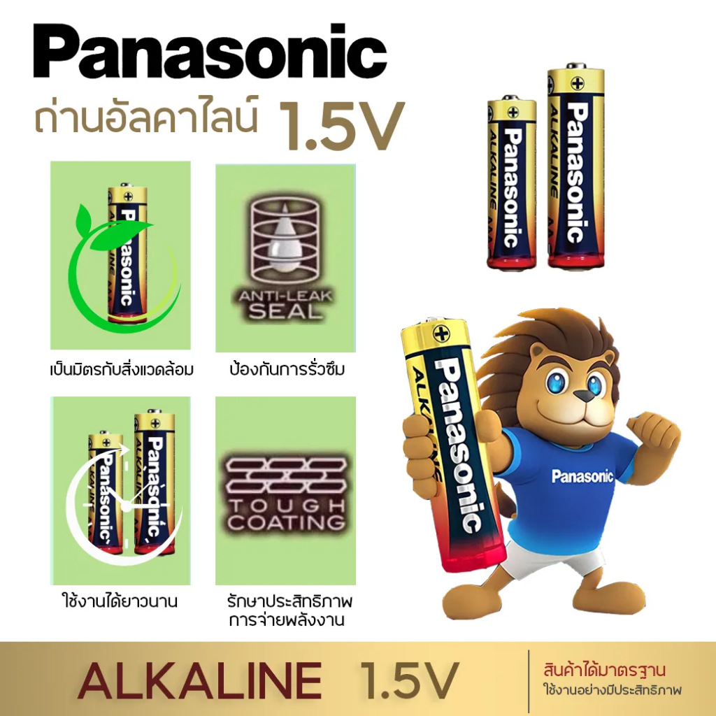 Panasonic ถ่านอัลคาไลน์ 15V ขนาด AA /AAA - Lot ใหม่ ของแท้ ถ่าน ถ่านไฟฉาย พลานาโซนิค อัลคาไลน์ถ่านพานาโซนิคอัลคาไลน์ - อีกหนึ่งพัฒนาการทางเทคโนโลยีที่พร้อมสนองตอบการใช้งาน กับอุปกรณ์ดิจิตอลในปัจจุบัน - เพิ่มพลังไฟให้พลังงานมากขึ้น 20% เมื่อเทียบกันถ่านอัลคาไลน์รุ่นเก่า - LR6T/8B และ LR