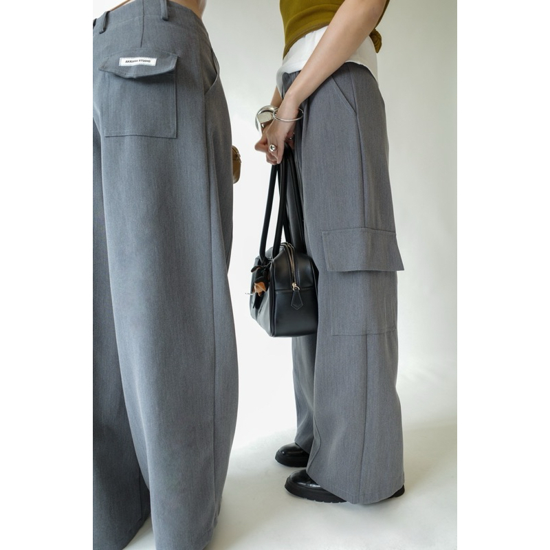 Akkara Studio - DION CARGO PANTS กางเกงขายาวcargo ทรงกระบอก ผ้าเทเลอร์