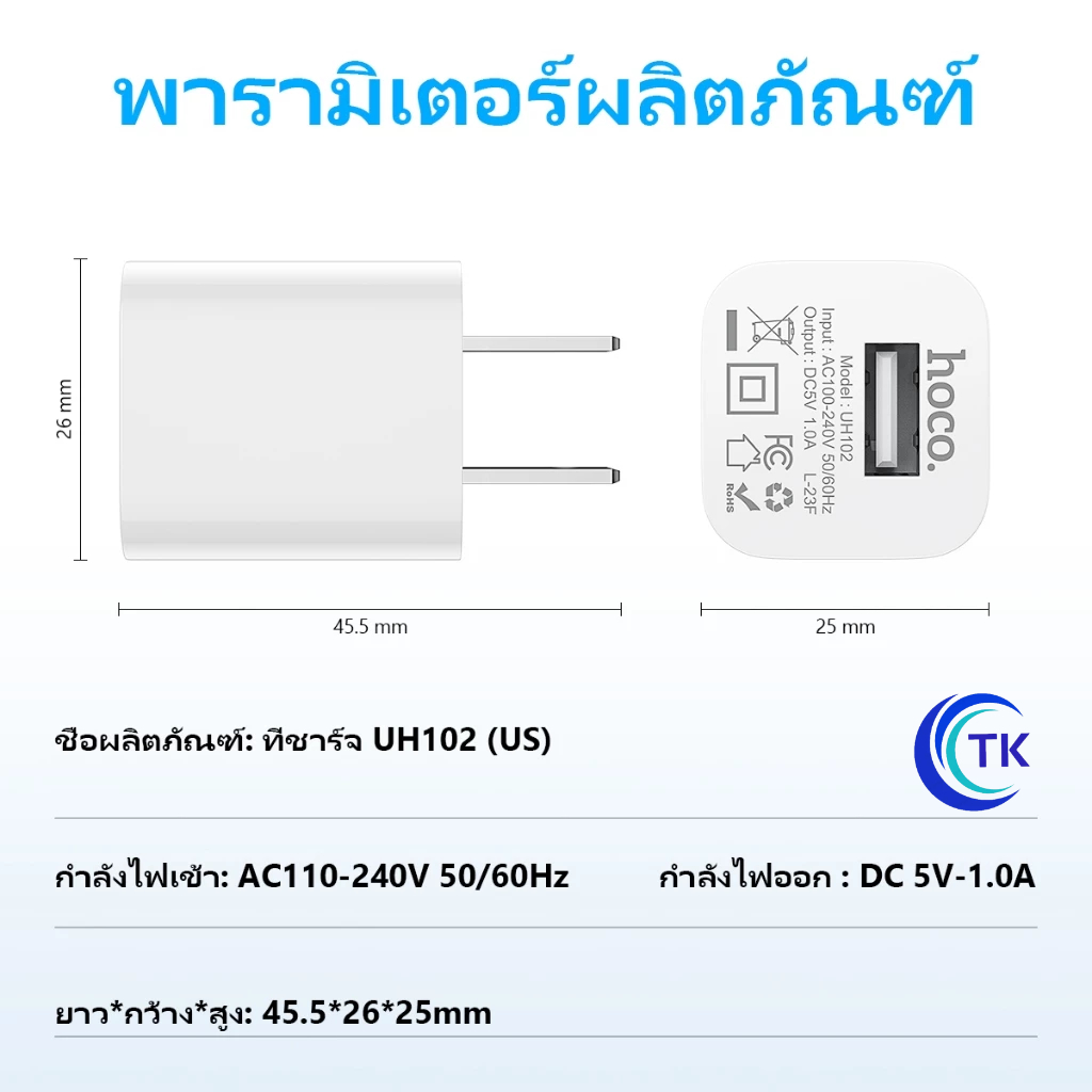หัวชาร์จ Hoco UH102 ของแท้100% 1 USB 1แอมป์