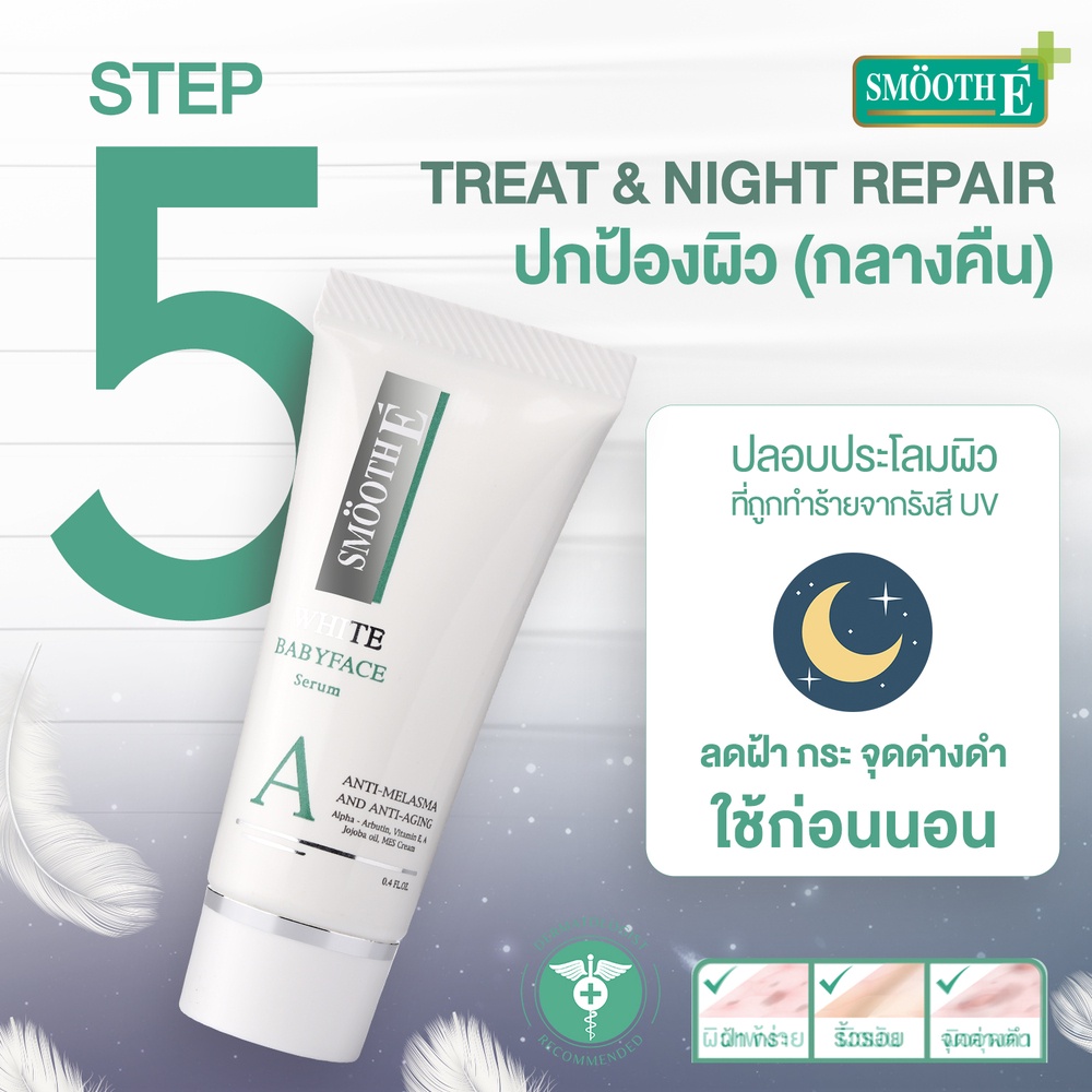 Smooth E Anti-Melasma White Babyface Serum 0.4 ,0.8 Oz เซรั่มรักษาฝ้า กลางคืน เห็นผลใน 4 สัปดาห์ ลดฝ้า กระ จุดด่างดำ