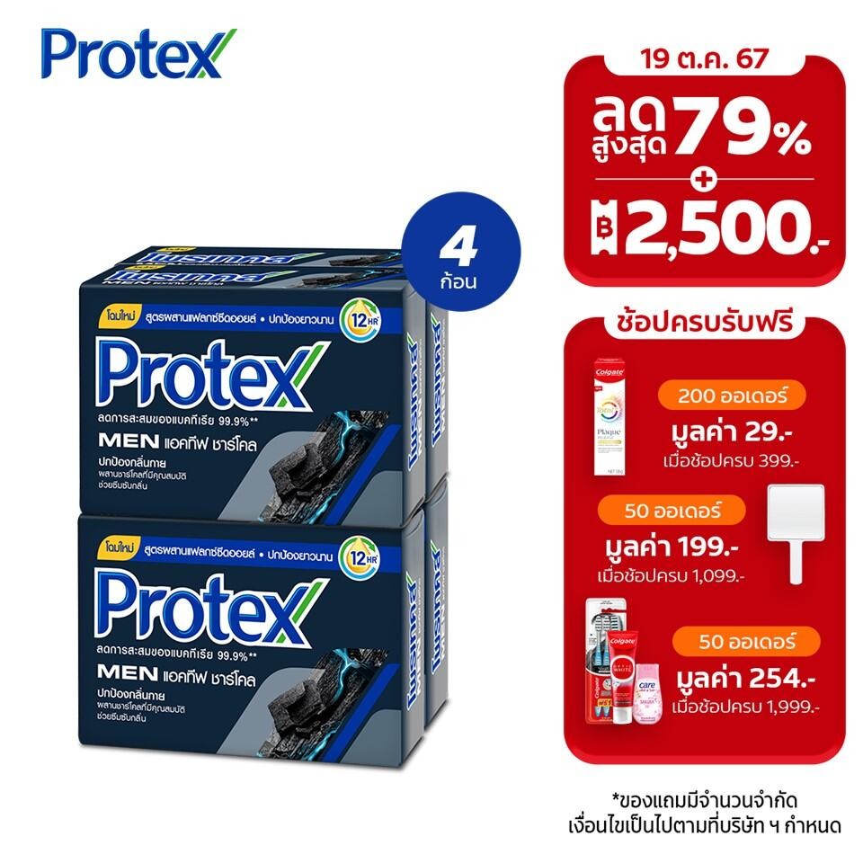 Protex โพรเทคส์ ฟอร์เมน แอคทีฟ ชาร์โคล 60 กรัม รวม 4 ก้อน ช่วยซึมซับกลิ่นกาย (สบู่ก้อน)