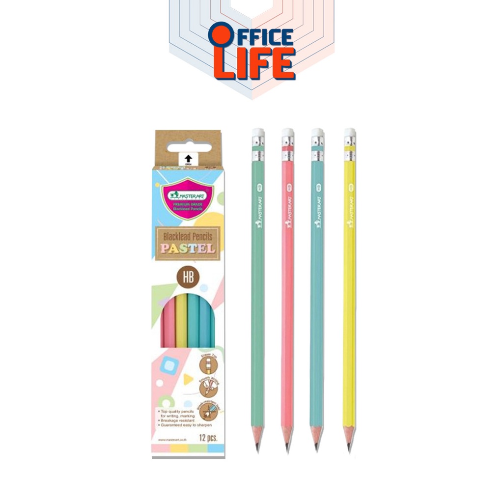 Masterart มาสเตอร์อาร์ต ดินสอดำ แฟนซี พลาสเทล ความเข้ม HB / 2B ฟรีกบเหลา ( 12 แท่ง / คละลาย )