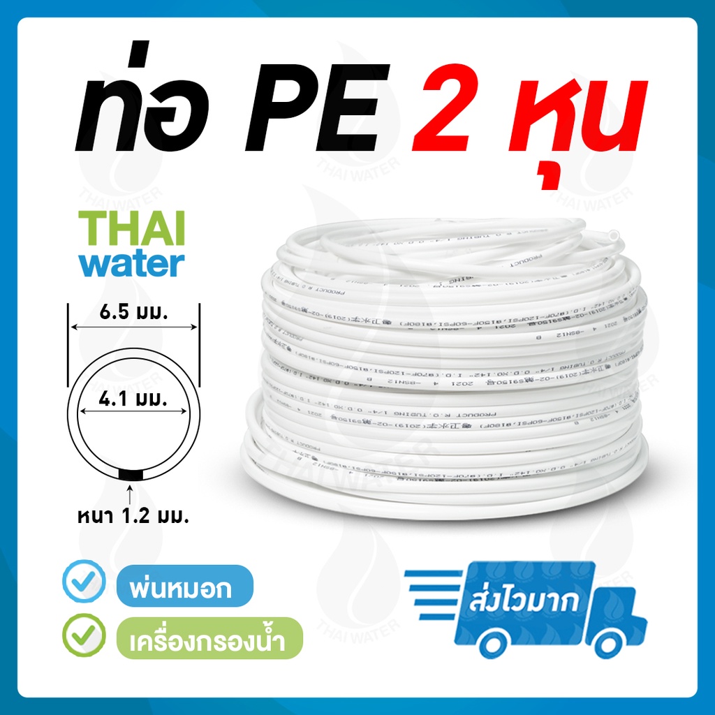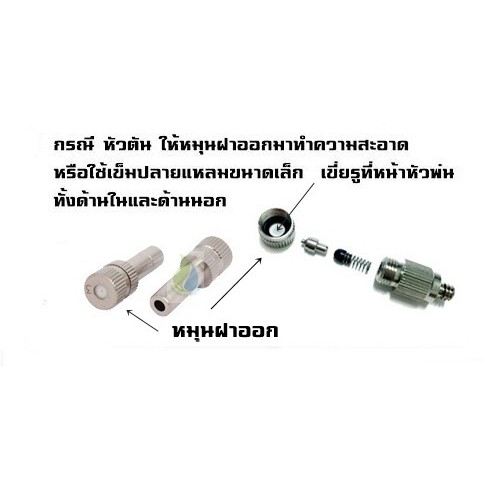 ... ำหรับสายพ่นหมอก หรือท่อน้ำ สีขาว ขนาด 2 หุน หรือ 1/4" ( 6.5 มม. ) 📌ข้อต่อลม 3 ทาง สีดำ 6 มม. : เหมาะสำหรับสายพ่นหมอก หรือท่อน้ำ สีดำ ขนาด 4x6 มม. ( วัดนอก 6 มม. ) 📌ข้อแนะนำ ข้อต่อลมสีดำ ขนาด 6 มม. ไม่เหมาะใช้กับสายขาวขนาด 1/4" หรือ 2 หุน หรือ 6.5 มม. เพราะอาจจะทำให้รั่วได้ แต่ถ้าจะใช้ให้ใช้คัตเตอร์ตัดสาย 2 หุนตัดสายให้ตรงและยัดให้สุดจะช่วยได้บ้างครับ 📌ข้อแนะนำ ข้อต่อสีขาว ขนาด 1/4" หรือ 2 หุน หรือ 6.5 มม.ถ้าจะใช้กับสายพ่นหมอก หรือสายน้ำขนาดวัดนอกขนาด 4x6 มม. ( วัดนอก 6 มม. ) อาจจะทำให้รั่วได้ สามารถเลือกความละเอียดของหัวพ่น 0.1 - 0.8 มม.ได้ ถอดล้างทำความสะอาดได้โดยใช้เข็มเล็กๆแแหย่ หัวพ่นหมอก 0.1 มม.ร้านอาหาร กาแฟ ติดหน้าพัดลม คอยด์แอร์ สวนหย่อม โควิด-19 แรงดัน 9 บาร์ขึ้นไป หัวพ่นหมอก 0.2 มม.ชายคา ระเบียง สวนหย่อม ต้นไม้ ฟาร์มเห็ด ฟาร์มผัก แรงดัน 8 บาร์ขึ้นไป หัวพ่นหมอก 0.3 มม.รดน้ำต้นไม้ ฟาร์มเห็ด ฟาร์มผัก มอส เฟริ์น แรงดัน 6 บาร์ขึ้นไป หัวพ่นหมอก 0.4 มม.ดักฝุ่นPM2.5 รดน้ำต้นไม้ ฟาร์มเห็ด ฟาร์มผัก แรงดัน 4 บาร์ขึ้นไป หัวพ่นหมอก 0.5 มม.ดักฝุ่นPM2.5 รดน้ำต้นไม้ ฟาร์มเห็ด ฟาร์มผัก แรงดัน 3 บาร์ขึ้นไป หัวพ่นหมอก 0.6-0.8 มม.ดักฝุ่นPM2.5 รดน้ำต้นไม้ ฟาร์มเห็ด ฟาร์มผัก แรงดัน 2 บาร์ขึ้นไป การคำนวณจำนวนหัวขึ้นอยู่กับอัตราการไหลของปั๊ม หมายเหตุ : ทางร้านไม่สามารถแก้ไขเบอร์โทรหรือเปลี่ยนที่อยู่ได้นะจ๊ะ ทางร้านแก้ไขให้ไม่ได้จ้า ❌ 🚩 กรณีใส่ที่อยู่ผิด >>> ให้กดยกเลิกคำสั่งซื้อ >>> แล้วกดสั่งซื้อสินค้าเข้ามาใหม่จ้า 📌 หากสินค้ามีปัญหา แจ้งทางช่องแชทได้เลยจ้า ทางร้านรับผิดชอบจ้า 📌 ทางร้านมีรถขนส่ง Kerry Express มารับสินค้าทุกวันจันทร์ - เสาร์ เวลาประมาณ 14.00 น. ( ทางร้านไม่มีตัดรอบจ้า เพราะทางร้านจะไม่หยุดแพ็คสินค้าจนกว่ารถขนส่งจะมารับของจ้า เพราะทางร้านต้องการให้สินค้าถึงคุณลูกค้าทุกๆคนให้ไวที่สุดจ้า ) ลูกค้าได้รับสินค้าประมาณ 1-3 วันทำการ 📌 ที่อยู่ร้าน THAI WATER : 55,57 รามคำแหง 166 ถ.รามคำแหง กทม.10510 ( โซนมีนบุรี ใกล้ตลาดน้ำขวัญเรียม มิสทีน ) ⭐ ไม่แน่ใจในรายละเอียดสินค้า โปรดติดต่อช่องแชทได้เลยจ้า ทางร้านตอบแชทลูกค้าทุกท่านและไวจ้า ขอบคุณที่ใช้บริการจ้า ***หมายเหตุ ลูกค้าสามารถเลือกรูปแบบการขนส่งแบบ Buyer Self-Collect (ผู้ซื้อไปรับสินค้าเองที่ร้านค้าโดยตรง) โดยลูกค้าต้องทำการแจ้ง วัน และเวลา ในการเข้ารับสินค้ากับทางร้านค้าผ่านช่องทาง "แชทกับร้านค้า"