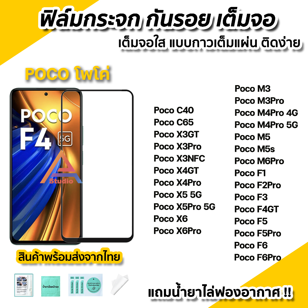 🔥 ฟิล์มกระจก กันรอย เต็มจอใส 9D สำหรับ Poco C40 M3Pro M4Pro M5 M5s F3 F4GT F5 PocoF6Pro X5Pro X4GT PocoX6 X6Pro Xiaomi