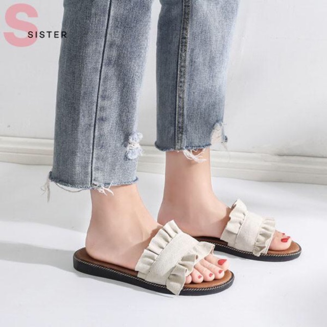 รองเท้าแตะ Dolly ทรงระบาย 3สี เจ้าแรก พร้อมส่งจากกทม