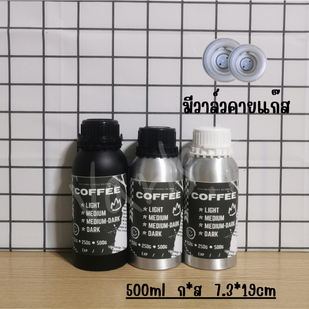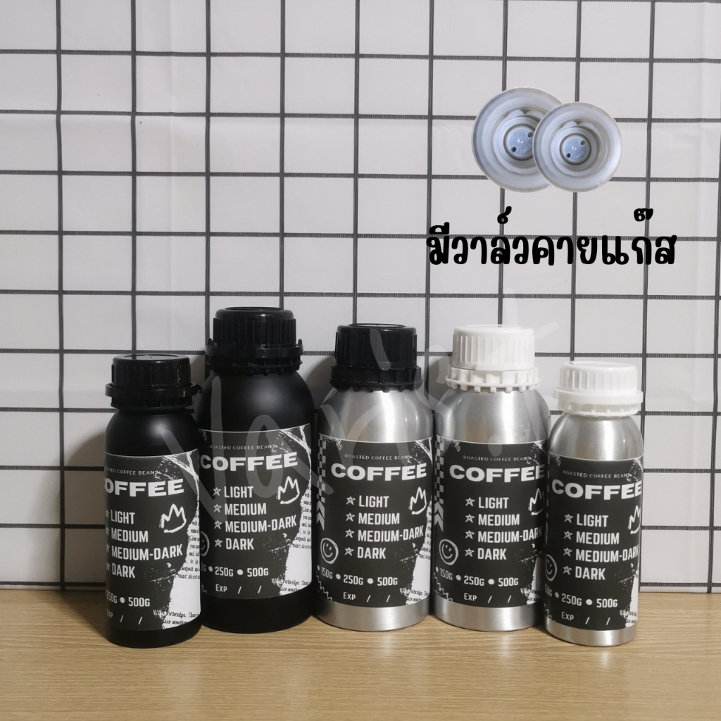 ขวดใส่เมล็ดกาแฟ 💥มีวาล์วคายแก๊ส💥 ขวดอลูมิเนียมใส่เมล็ดกาแฟ แถมฟรีสติ๊กเกอร์ !!