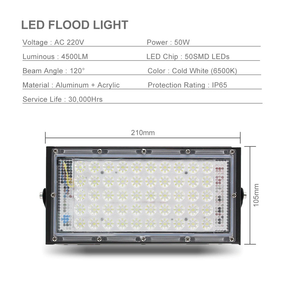 สปอร์ตไลท์ LED สว่าง ประหยัดไฟ **สินค้าเป็นขอบดำ ไฟขาว** ความสว่าง 4500 LM กันฝุ่น กันน้ำ Protection Rating IP65 เหมาะสำหรับใช้งานภายในอาคาร สำหรับใช้เพื่อให้แสงสว่าง กำลังไฟ 80 วัตต์ แรงดันไฟฟ้า: AC220V วัสดุเหล็ก + ASB แสงสีขาว6500K ขนาด20.5 x 10 เซนติเมตร อายุการใช้งาน 20,000 - 50,000 ช