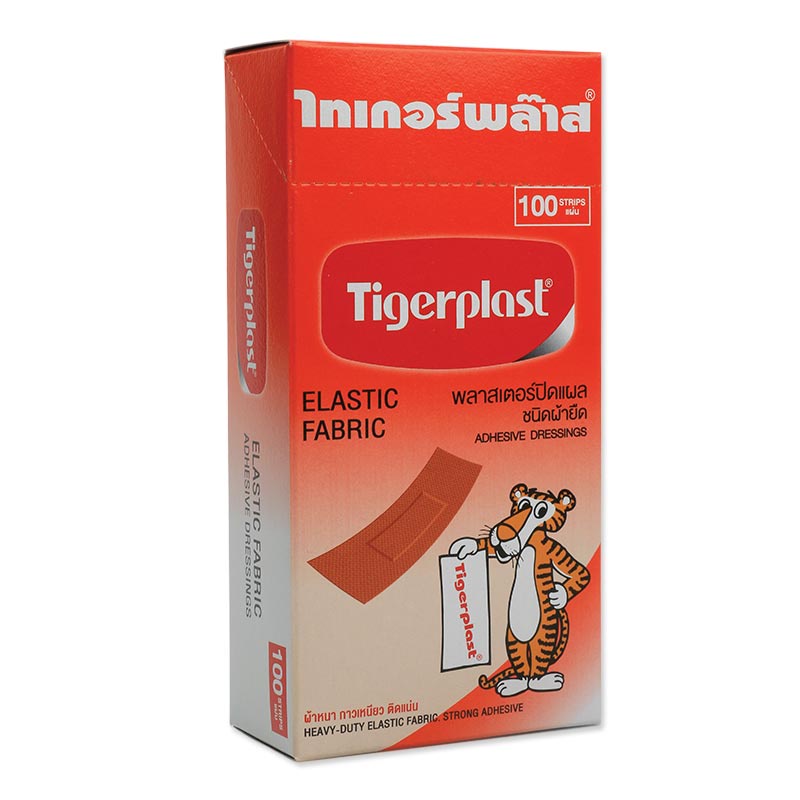 Tigerplast Elastic Fabric ไทเกอร์พล๊าส พลาสเตอร์ ปิดแผล ชนิดผ้ายืด พลาสเตอร์ปิดแผล 1 กล่อง บรรจุ 100 แผ่น (100X04231)